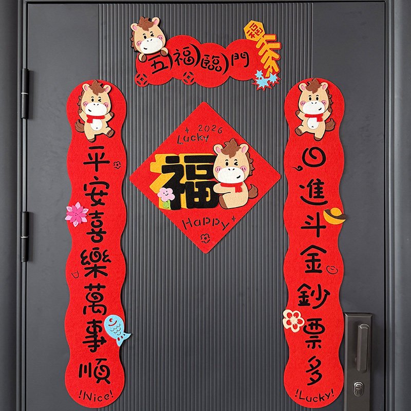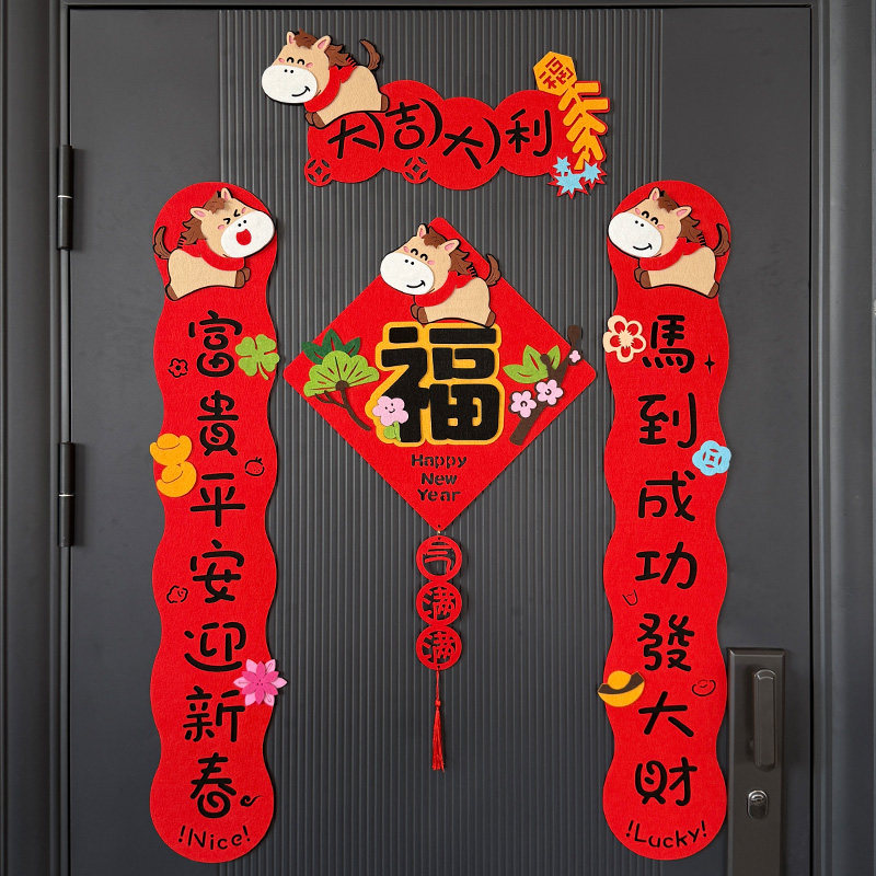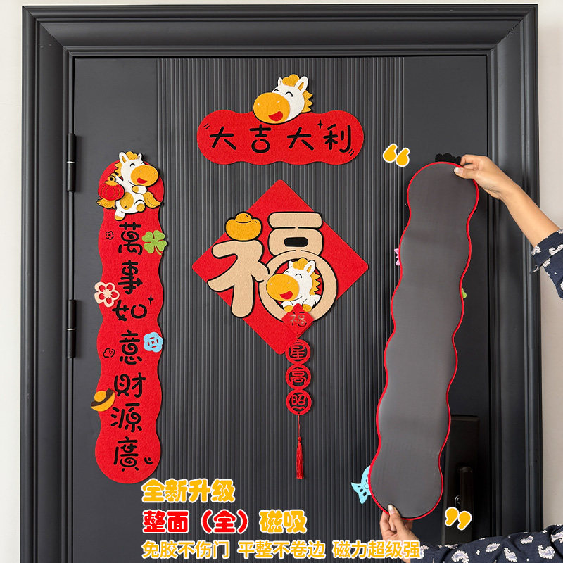 2026新款马年对联春节小春联磁吸创意植绒挥春大门福字年轻人门贴