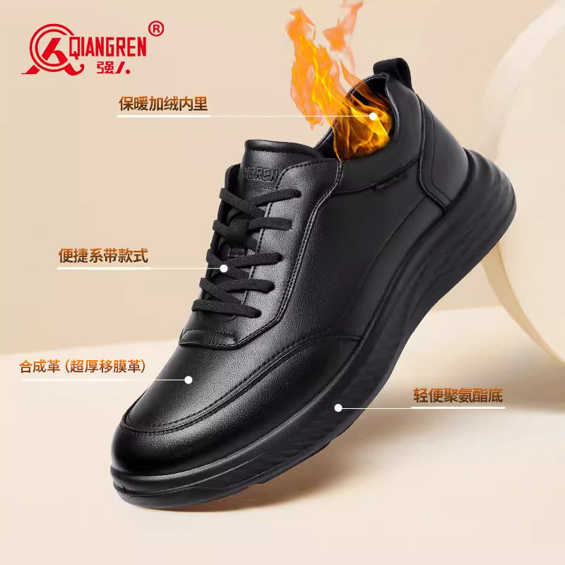 强人3515大码男鞋45冬季保暖加绒鞋46行政公务通勤鞋子加大加宽47