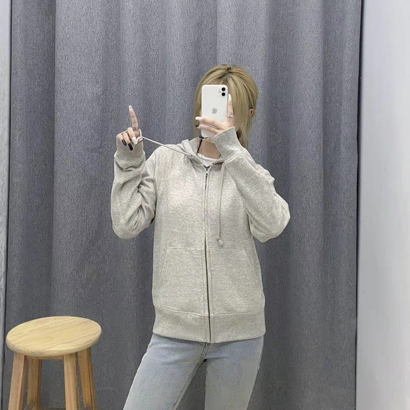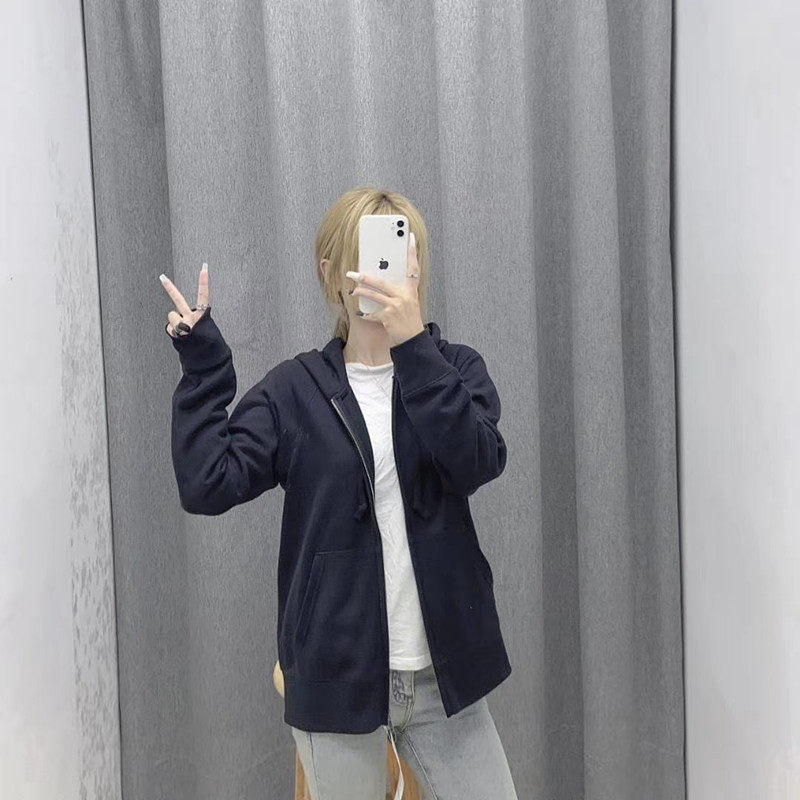 日单试衣间男女款秋冬慵懒风学生运动连帽拉链开衫卫衣外套428322