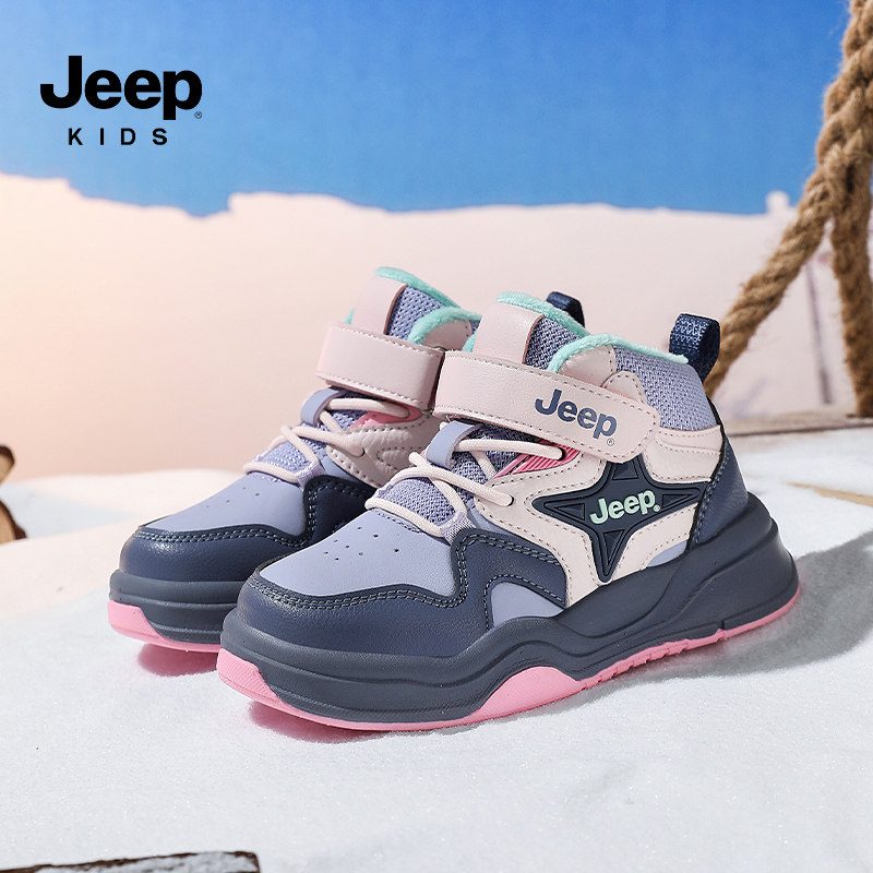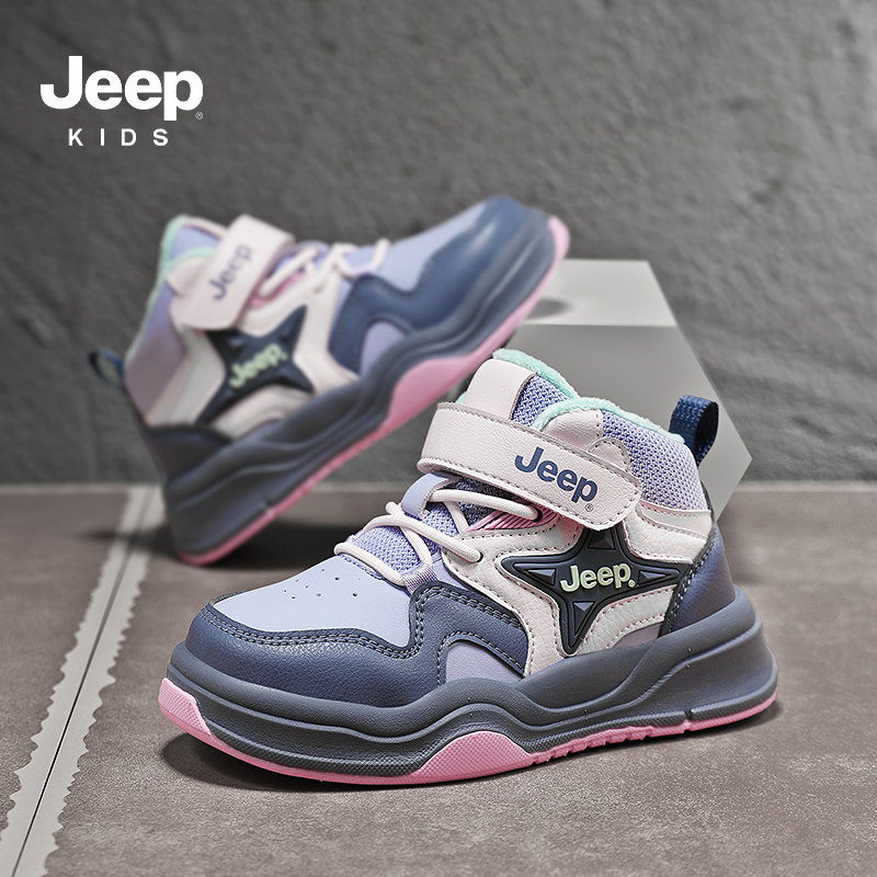 Jeep女童运动鞋冬季2025新款童鞋二棉鞋休闲保暖板鞋加绒儿童鞋子