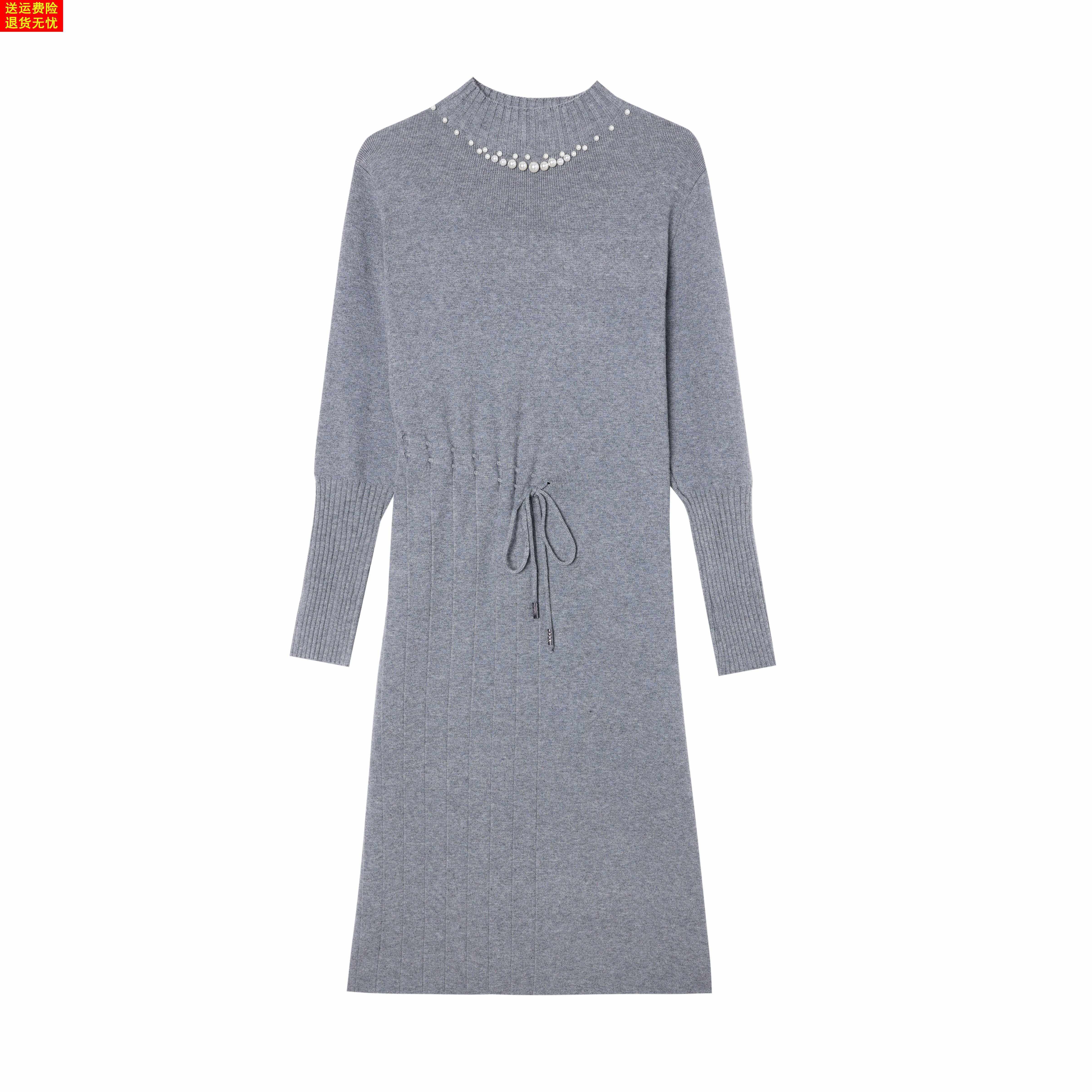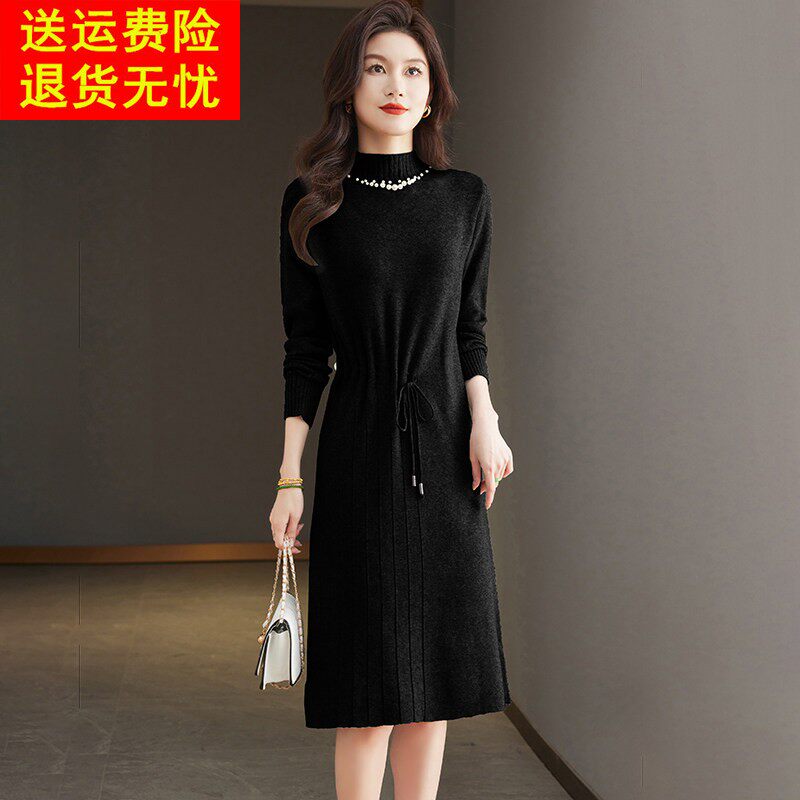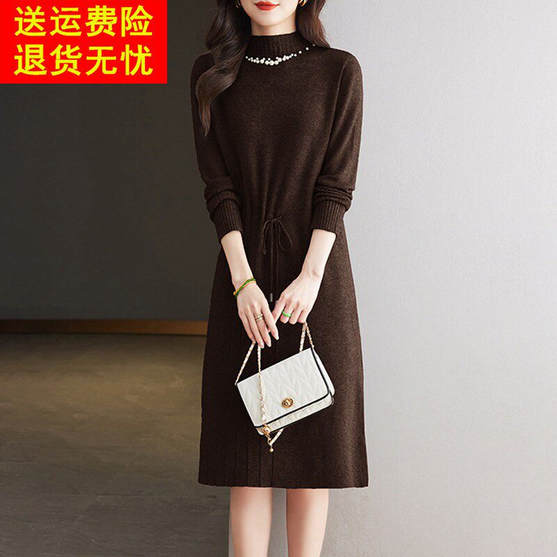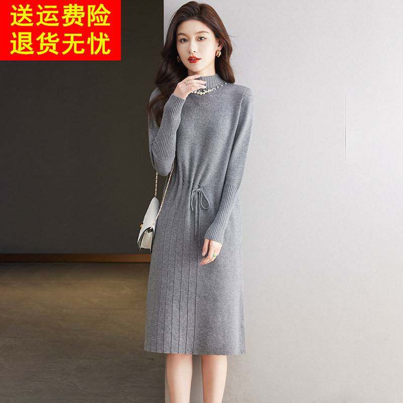 配大衣毛衣裙女秋冬2024新款轻奢高级感中长款羊毛内搭针织连衣裙