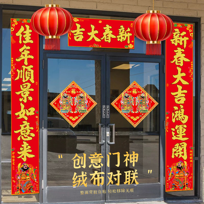 311线报网描述:自带背胶创意门神绒布对联农村别墅自建房