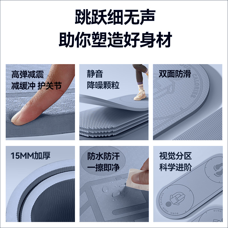 跳绳减震垫瑜伽垫子地垫室内家用隔音防震静音专业防滑加厚垫赫朗