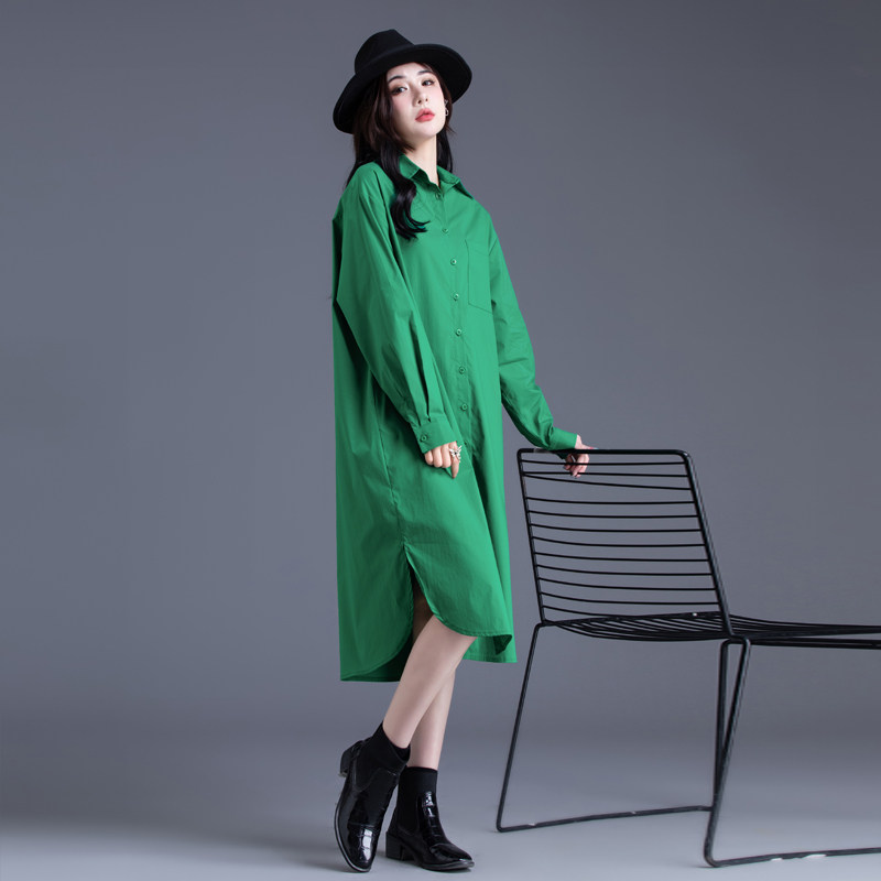 清仓衬衫连衣裙女春秋季2026新款中长款纯色高级感小个子衬衫长袖