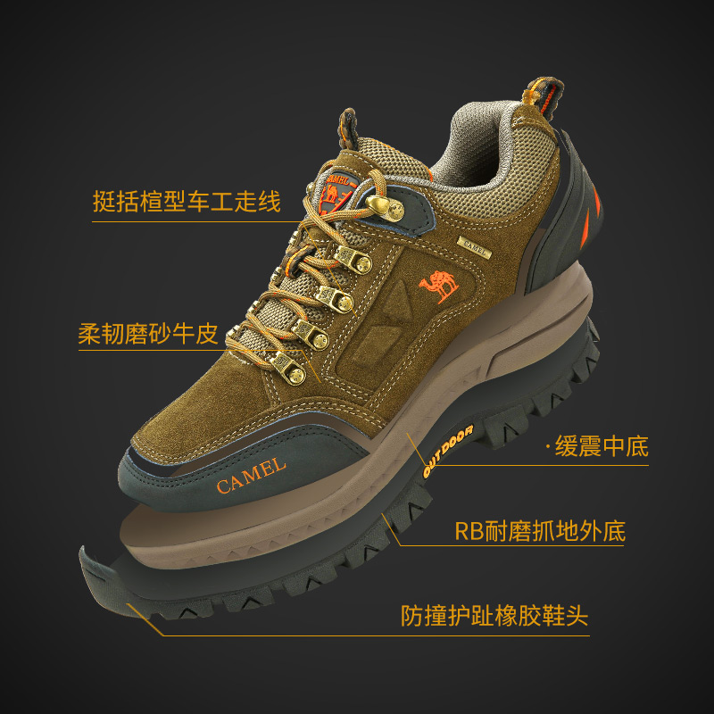 骆驼户外登山鞋男款防水防滑真皮耐磨春季爬山徒步鞋山地运动鞋子