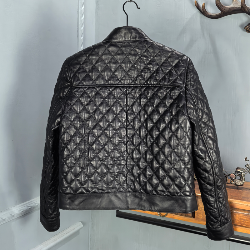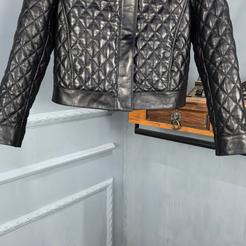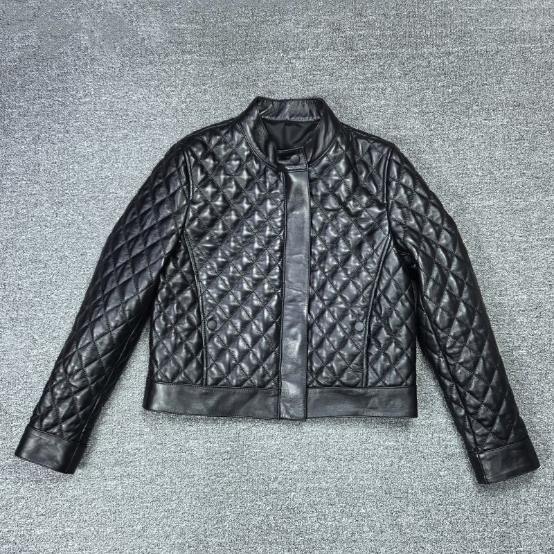 真皮立领绵羊皮皮衣女2026秋冬新款真皮短款菱格加棉夹克休闲百搭