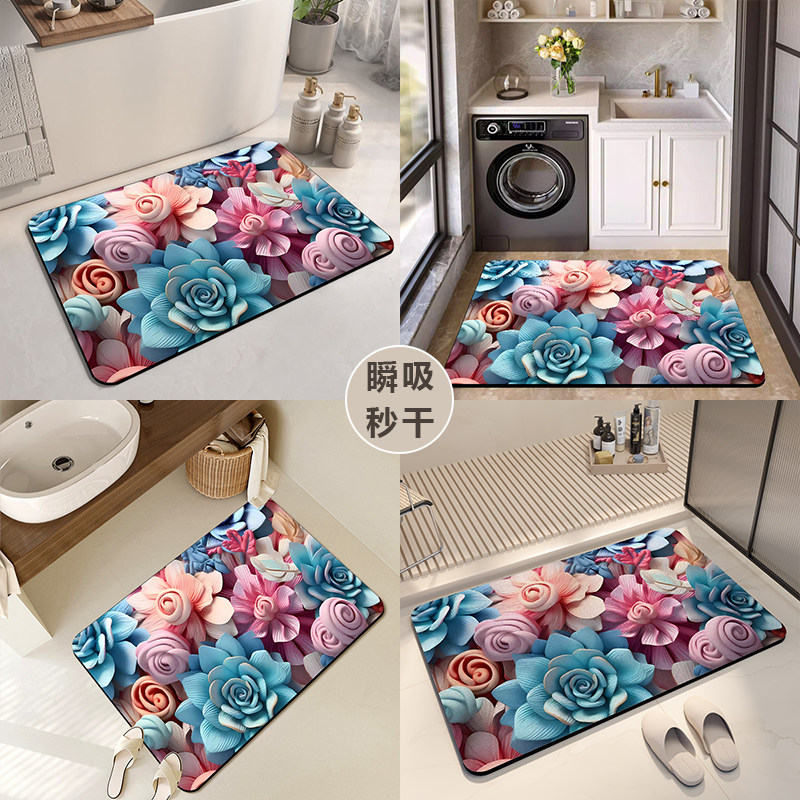 浴室地垫3D立体硅藻泥吸水垫卫生间门口脚垫厕所速干防滑垫地毯