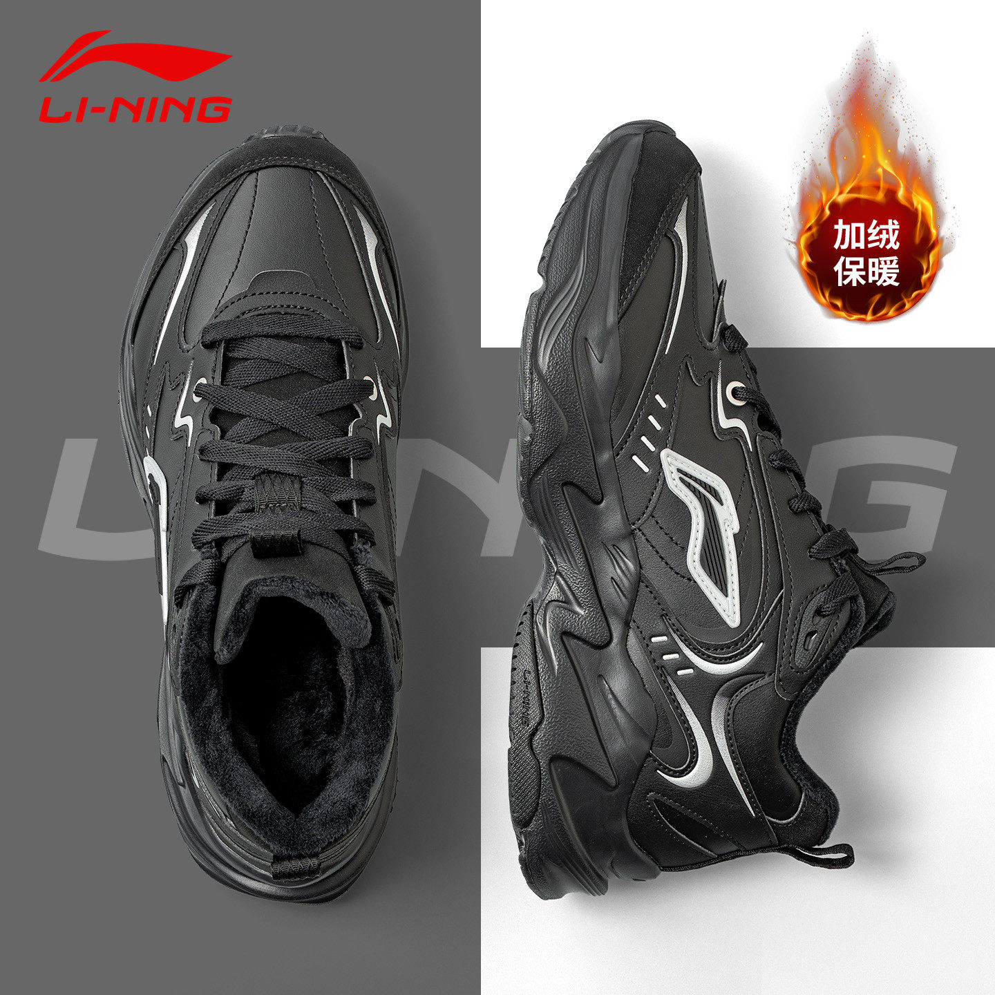 李宁加绒男鞋运动鞋冬季2026新款保暖减震回弹中帮经典休闲鞋男款