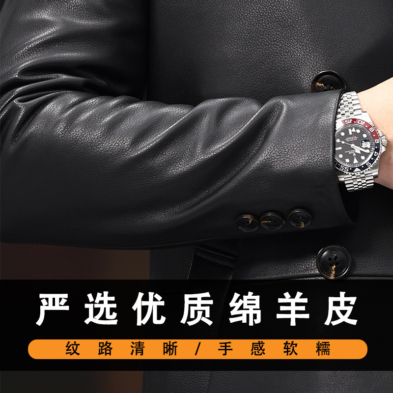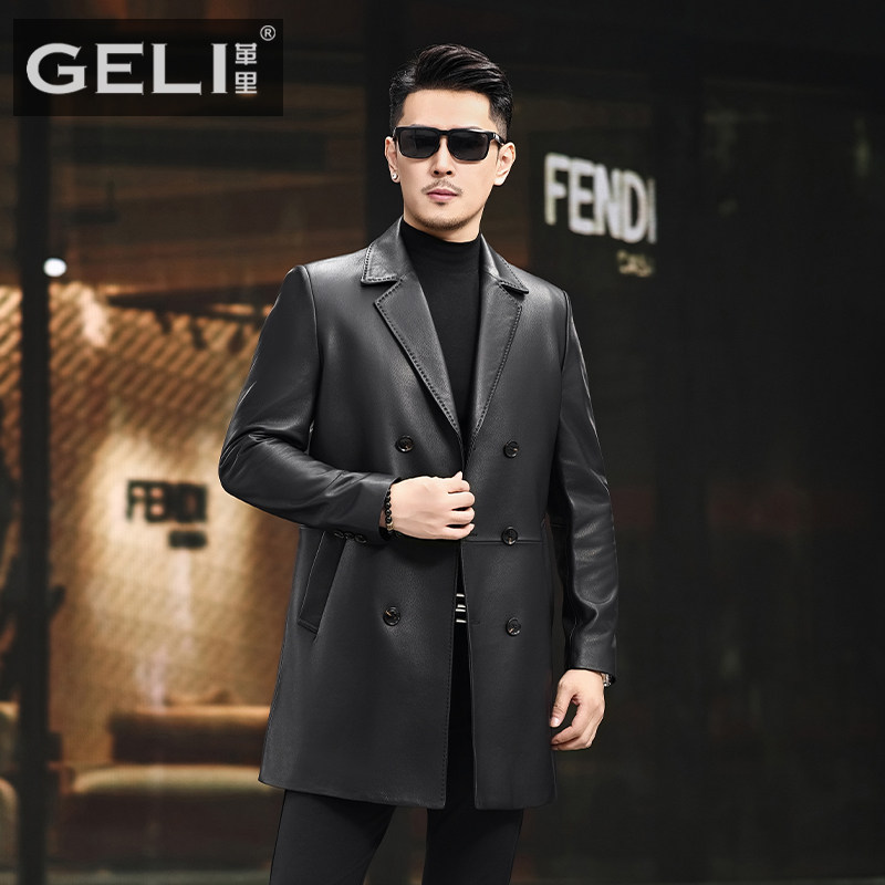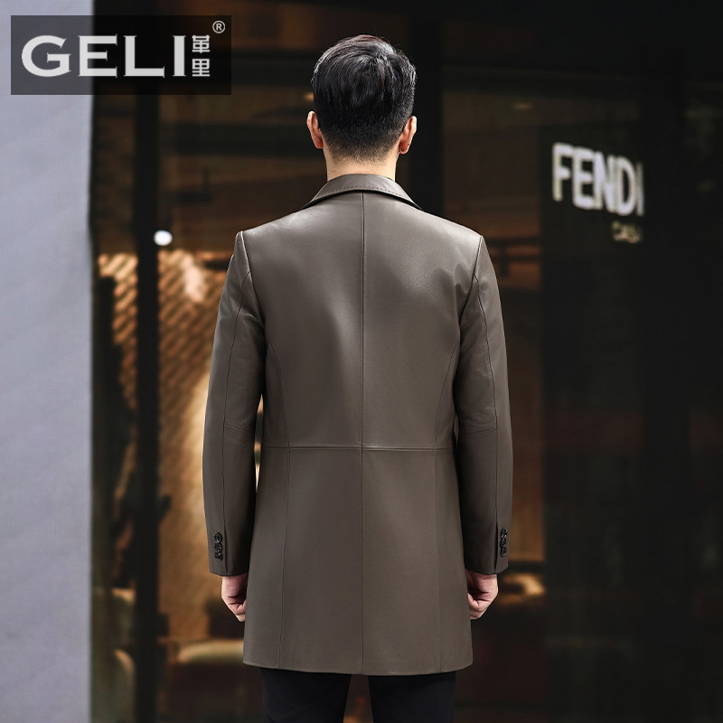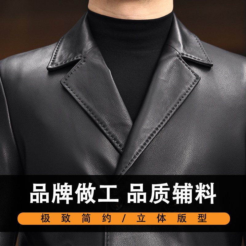 海宁真皮皮衣男头层绵羊皮夹克中长款风衣西装领修身商务大衣外套