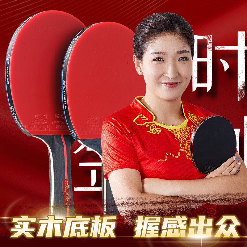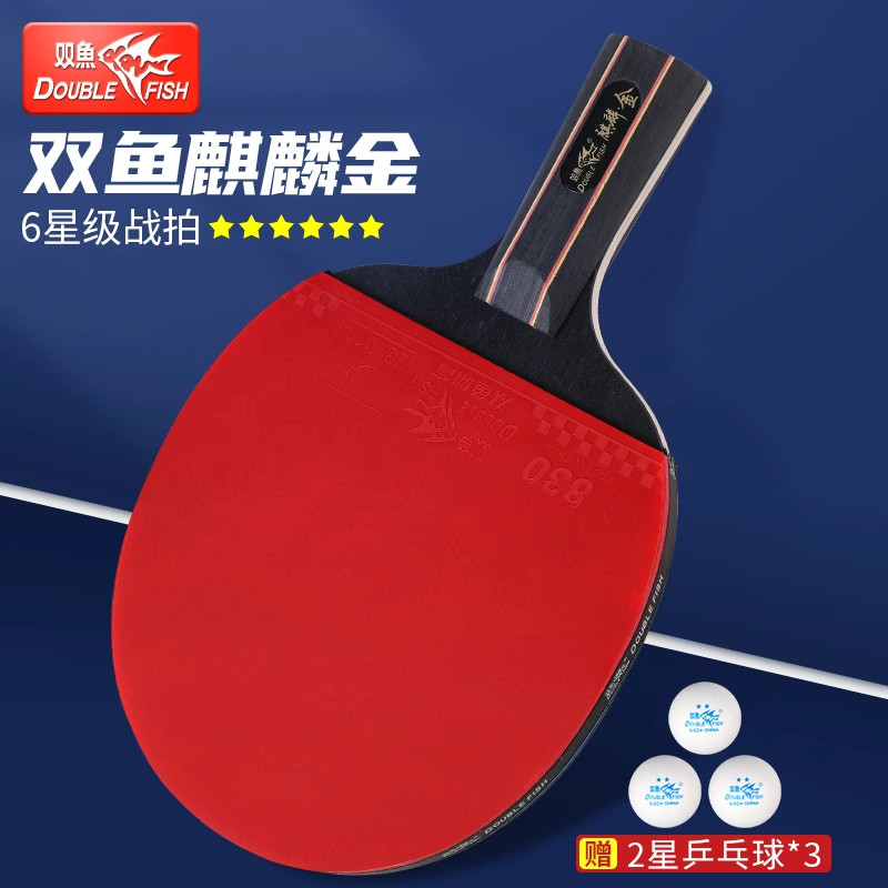双鱼乒乓球拍长短柄直拍横拍儿童初学者胶皮快攻高粘性正品套装