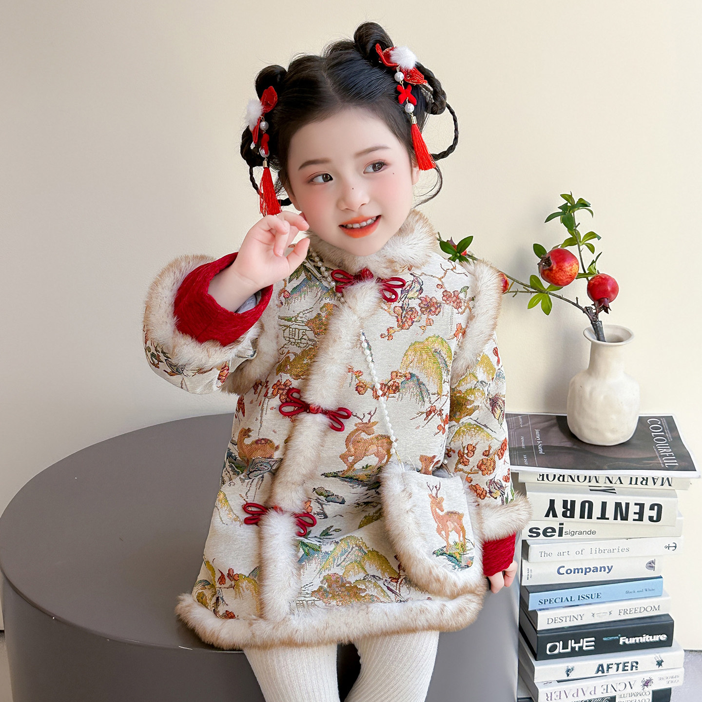 女童旗袍裙加厚古风小女孩连衣裙长袖女宝宝冬装新年唐装拜年服潮