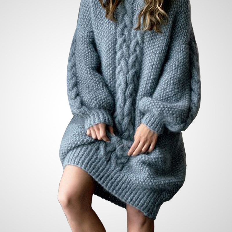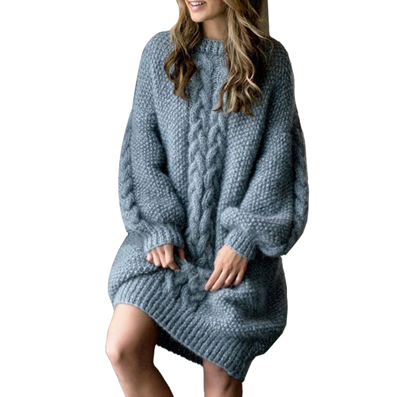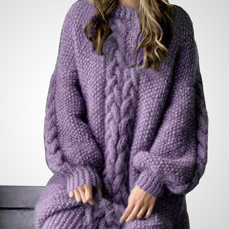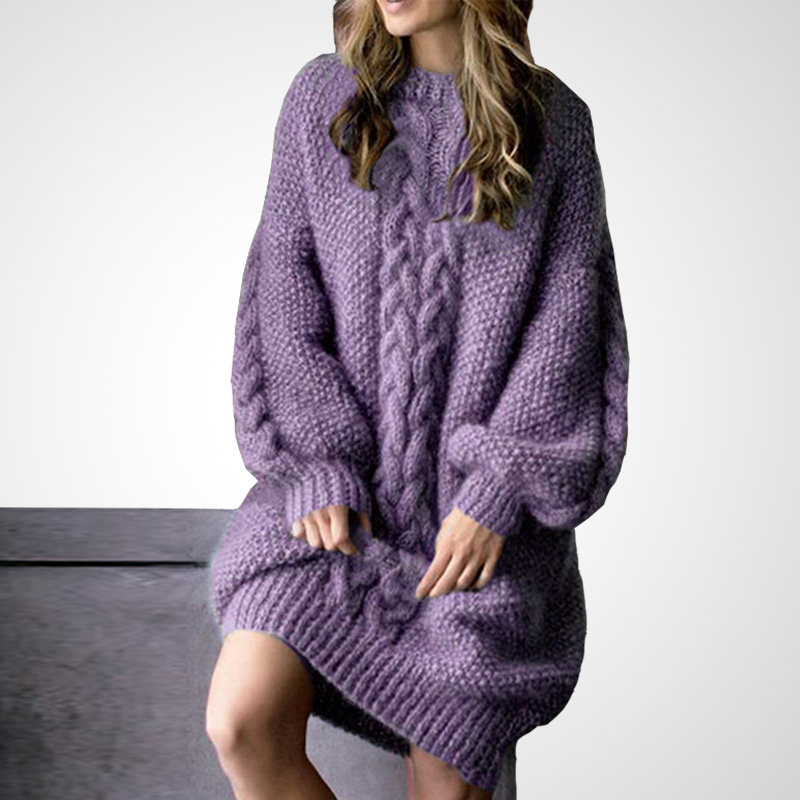 紫色针织连衣裙女春季季2026新款中长款宽松加厚长袖春天毛衣裙子