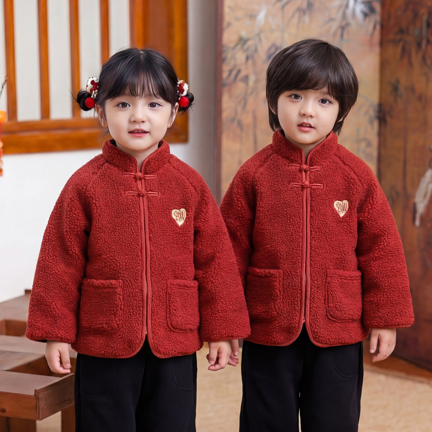 女童拜年服男童拜冬年服儿童过年服中式国风唐装新年衣服套装喜庆