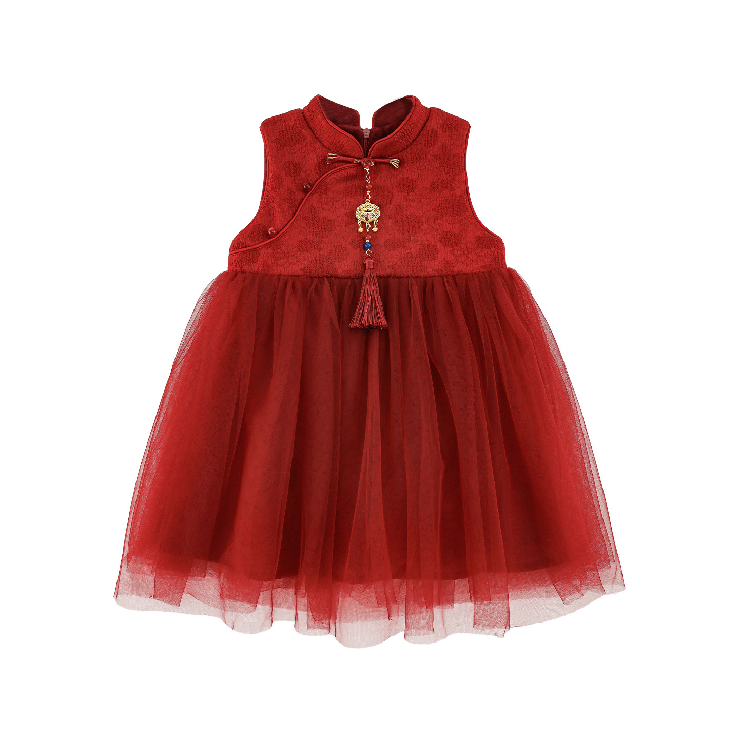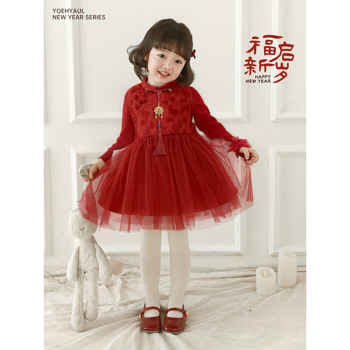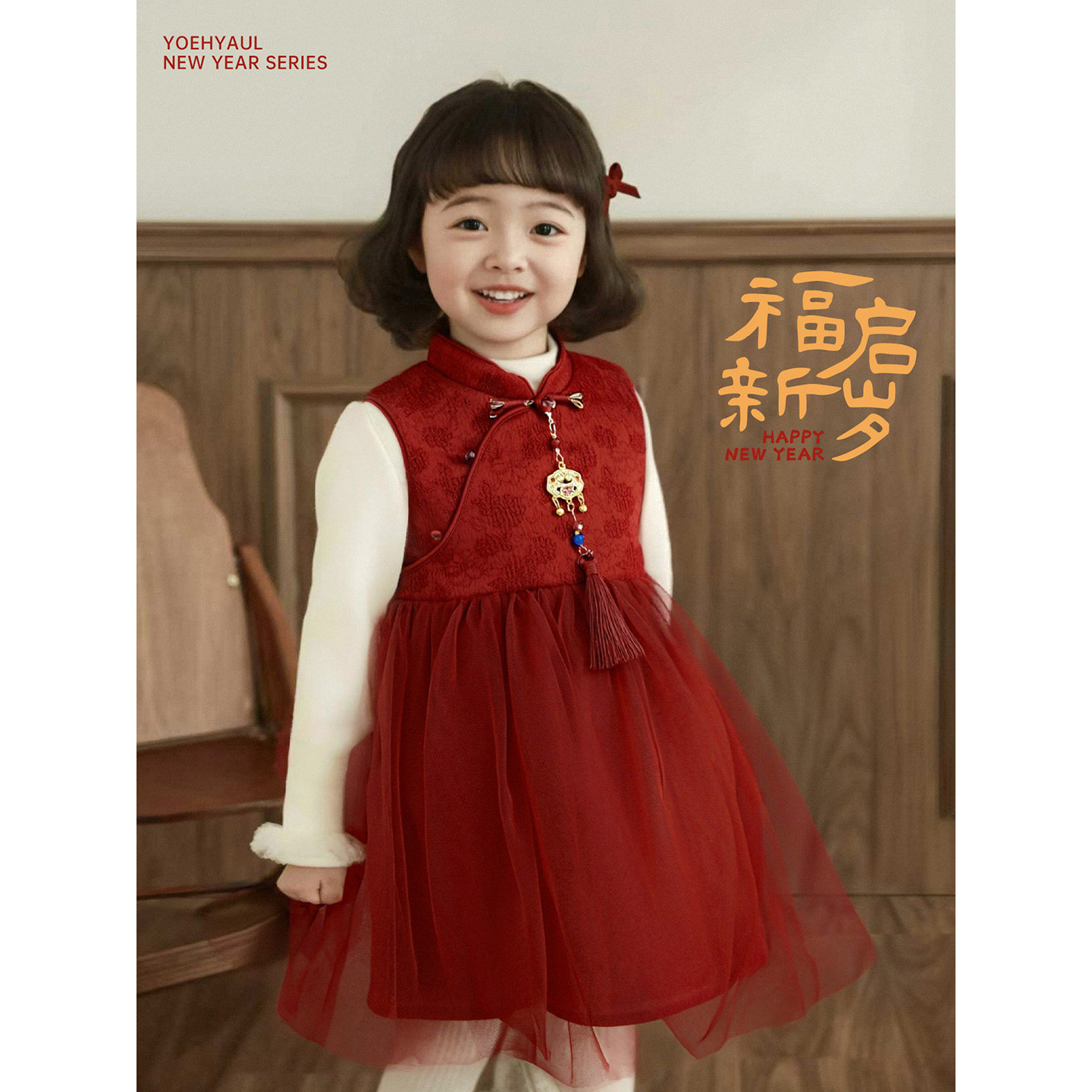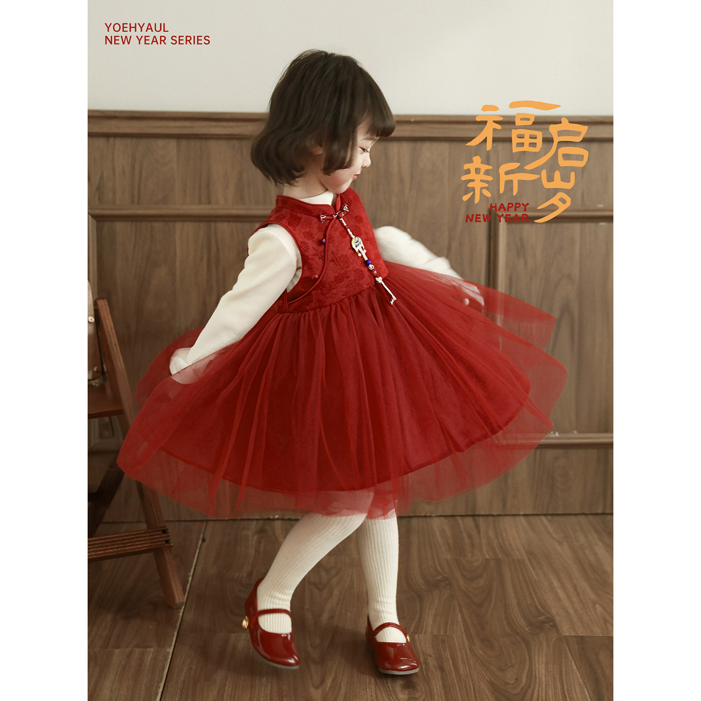 幼悠女童2025冬季新款加厚保暖网纱裙加绒时尚连衣裙小女孩过年服