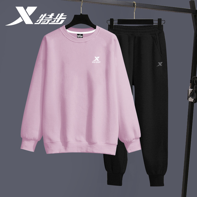 特步运动套装女2026新款大码宽松女装品牌正品圆领卫衣卫裤两件套