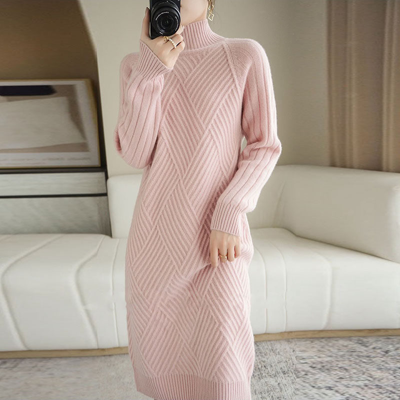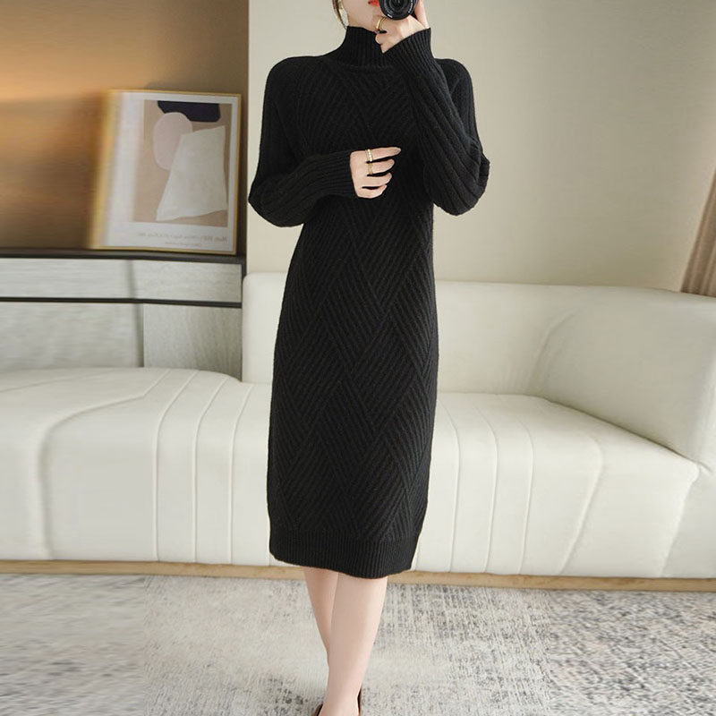 秋冬加厚毛衣裙半高领针织打底衫小个子中长款加绒连衣裙韩版温柔