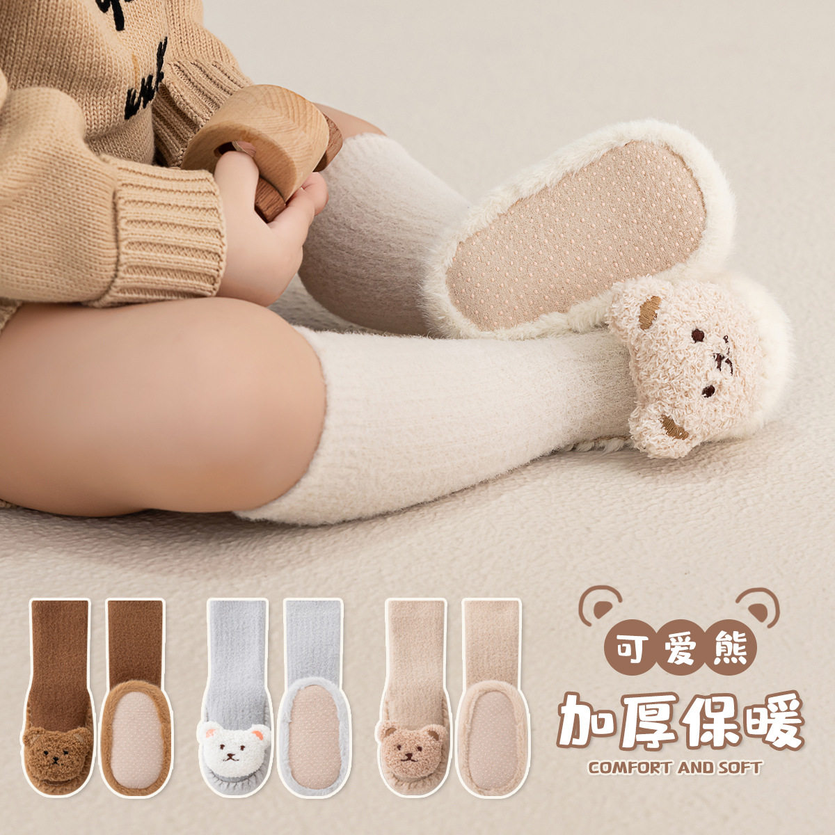 婴幼儿学步鞋子秋冬季男女宝宝防滑地板袜高中长筒加厚加绒小月龄