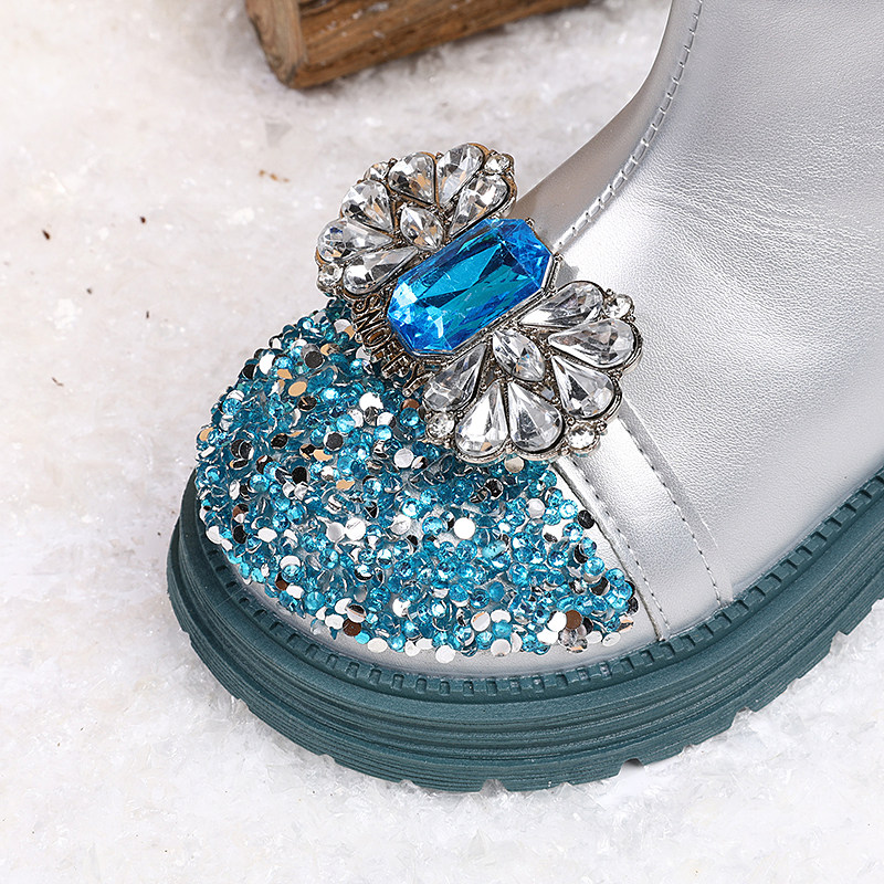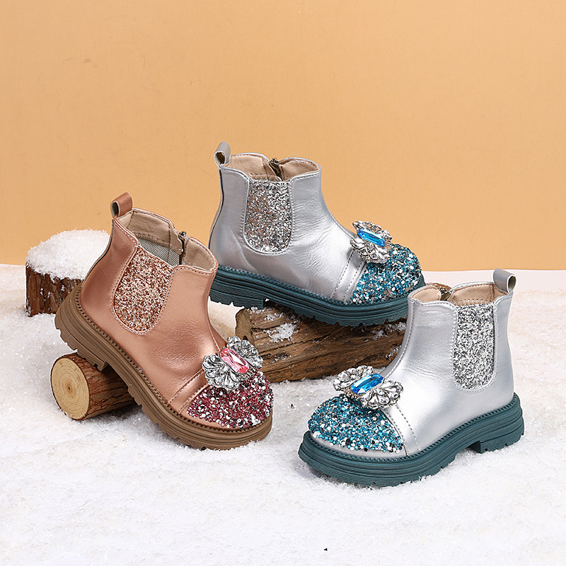 童鞋女童短靴加绒水晶公主鞋2024年新款秋冬爱莎软底水钻儿童鞋子