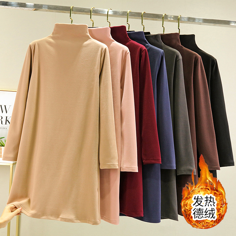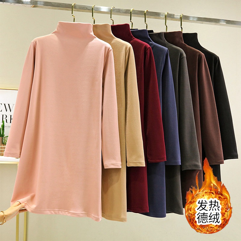 秋冬加绒加厚高领德绒打底衫女宽松中长款连衣裙大码保暖长袖t恤