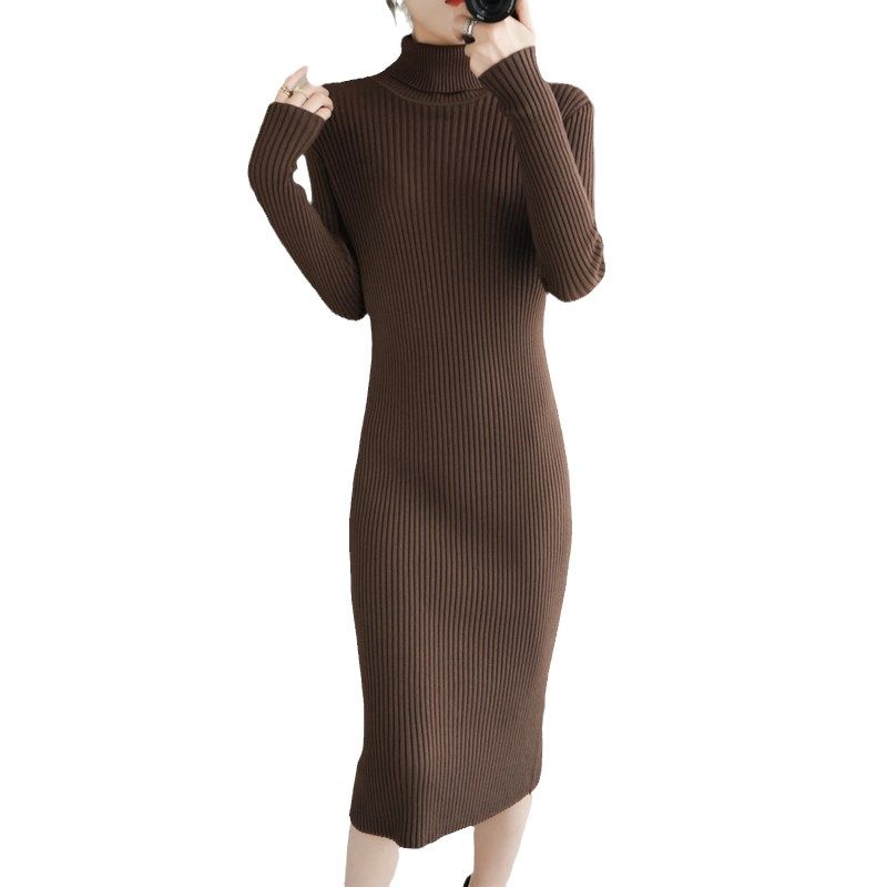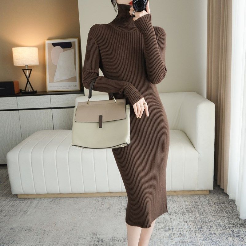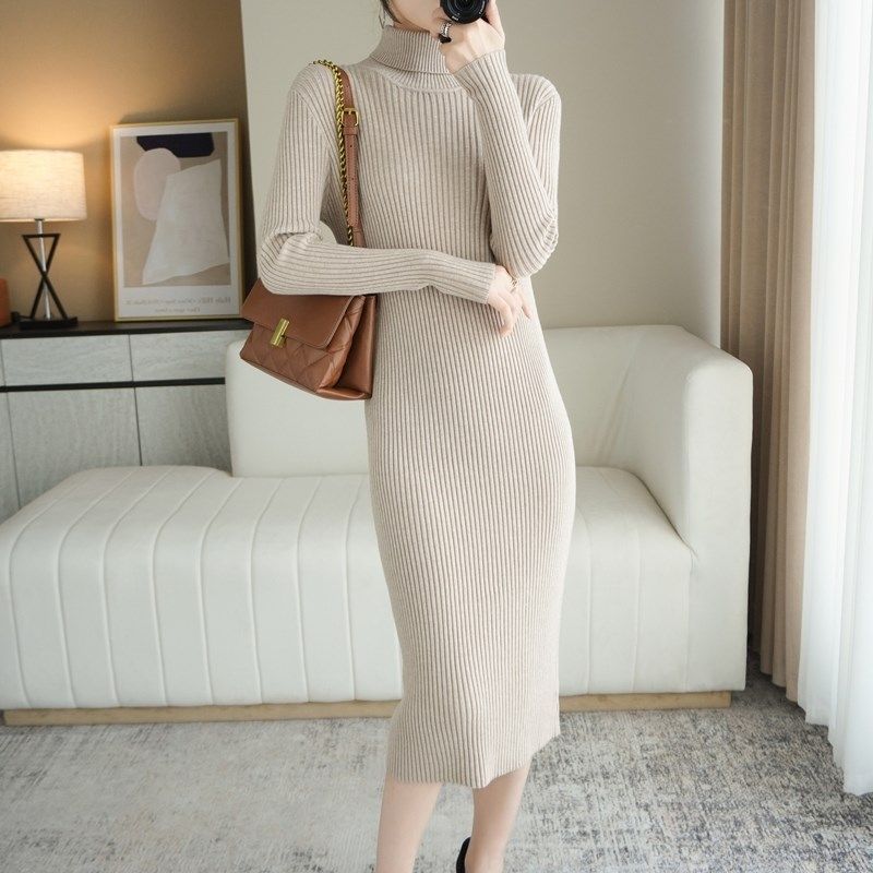 中长款高领套头毛衣裙女修身内搭羊毛过膝针织连衣裙打底衫配大衣
