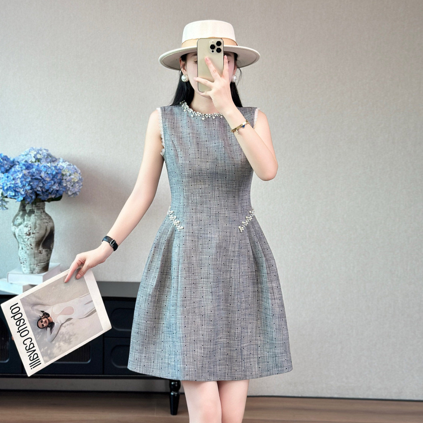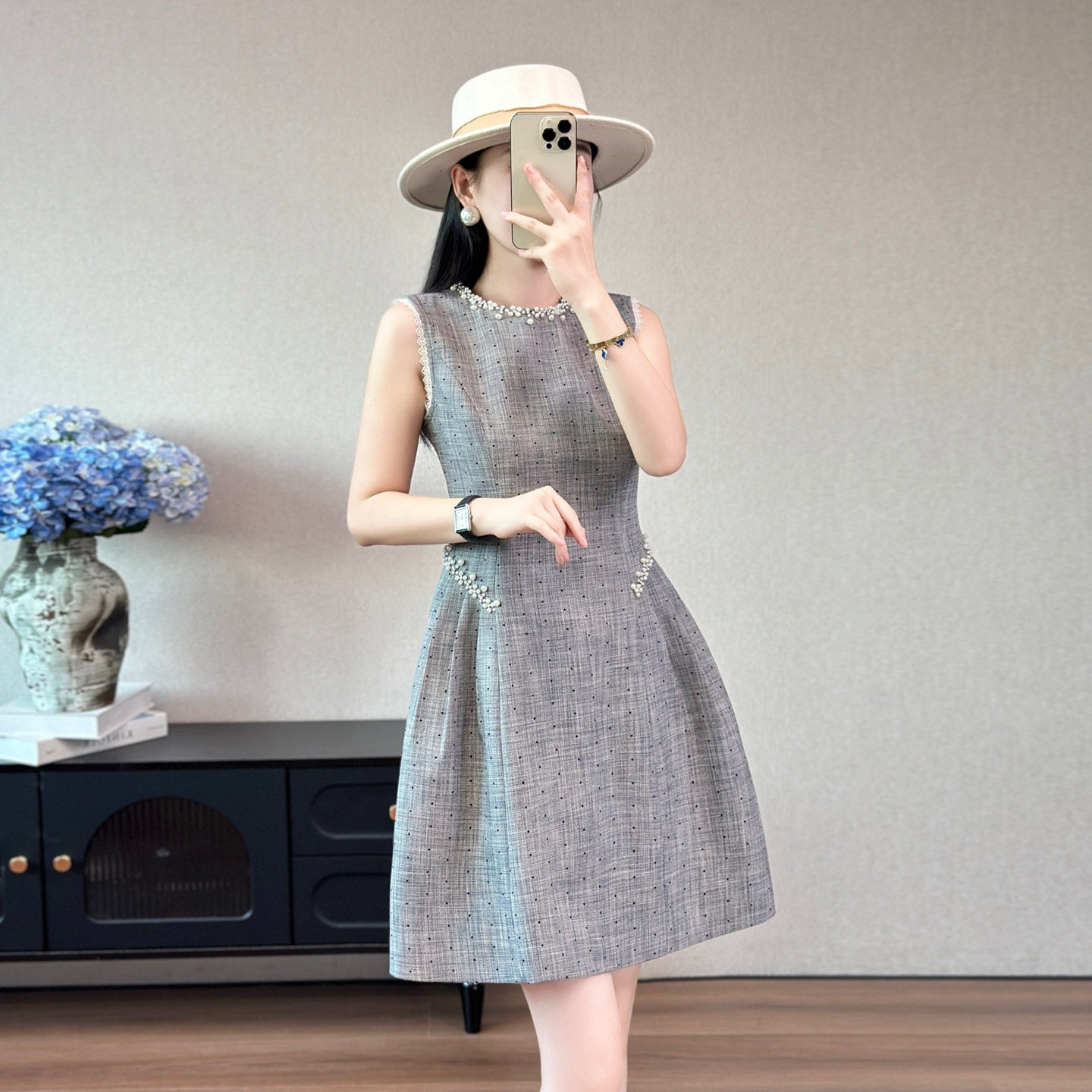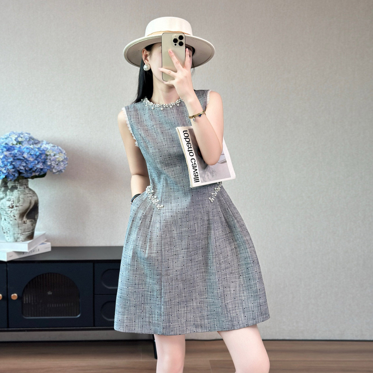 裙子质感高级感女装2026新款春季无袖外搭灰色特别漂亮掐腰连衣裙