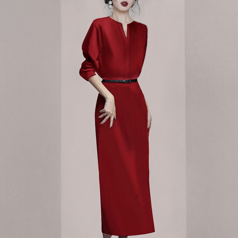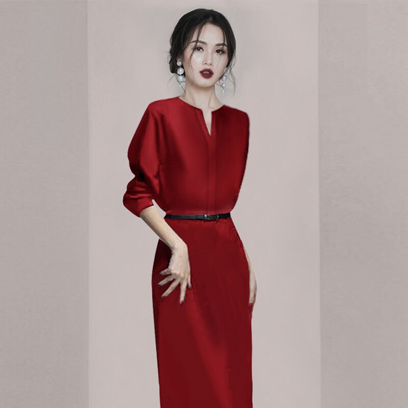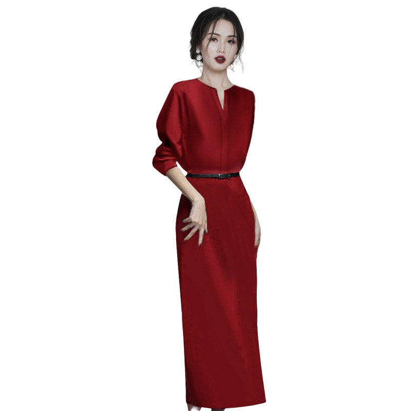 春季2025年新款春秋气质红色连衣裙女高端轻奢女装高级感高冷御姐