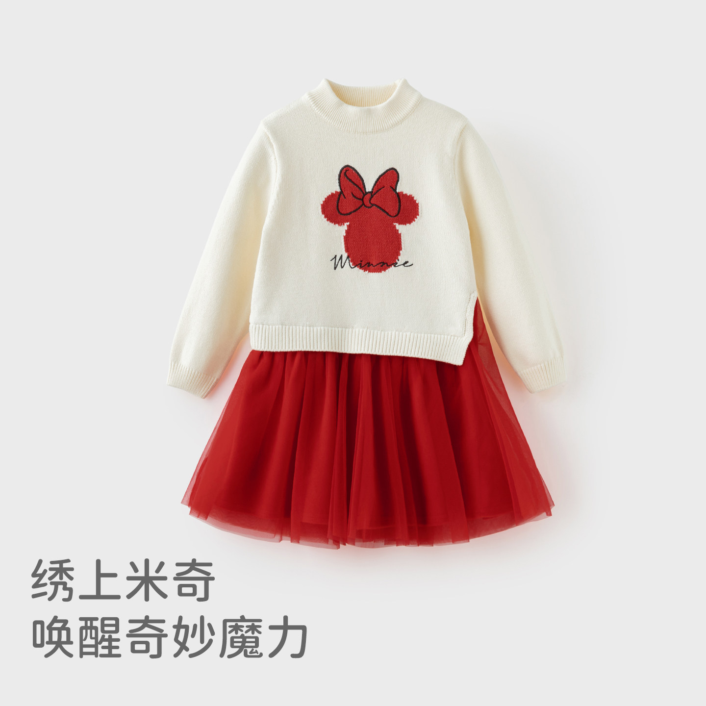 迪士尼IP戴维贝拉儿童毛衣网纱连衣裙女童2026冬新款新年红色裙子