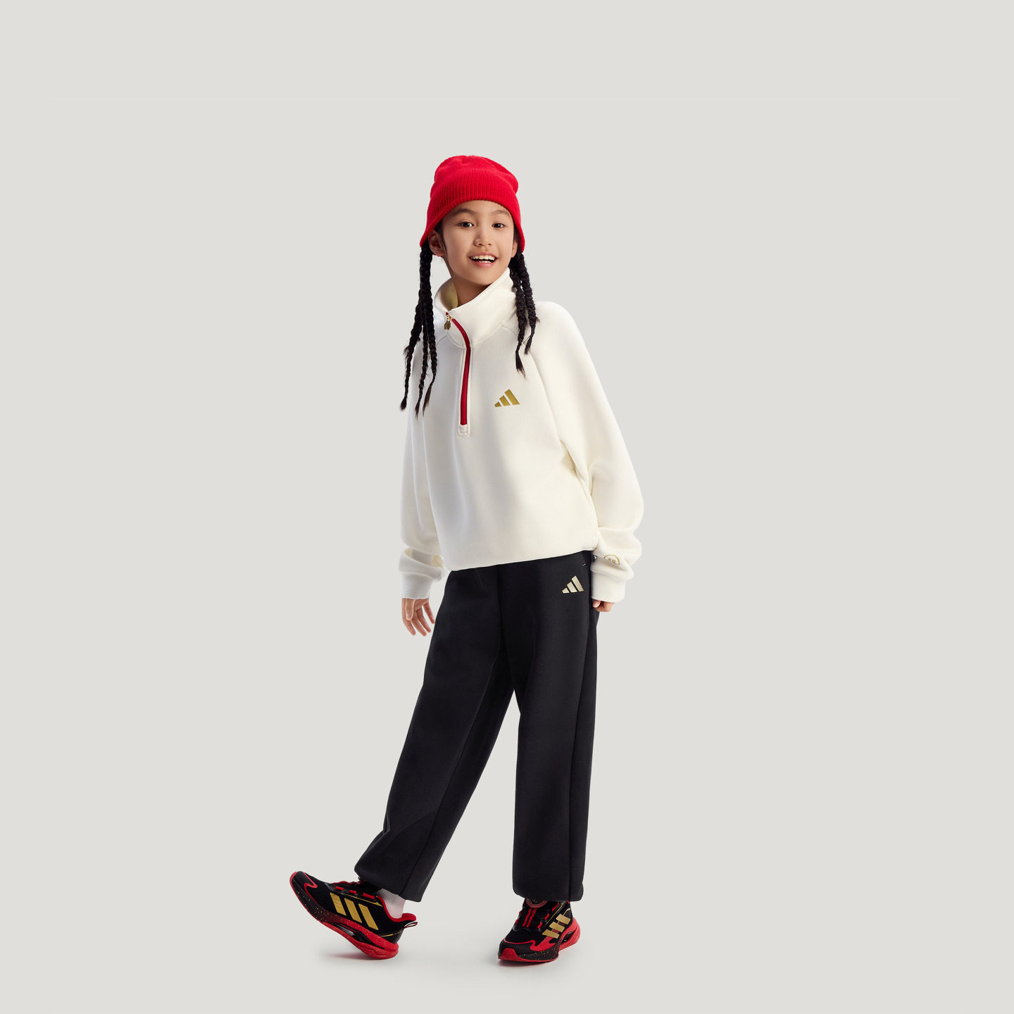 女童新年款休闲针织宽松半拉链儿童卫衣秋冬adidas阿迪达斯轻运动