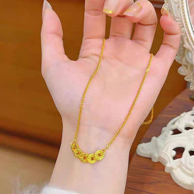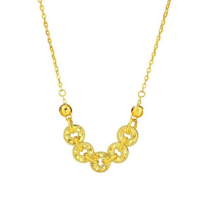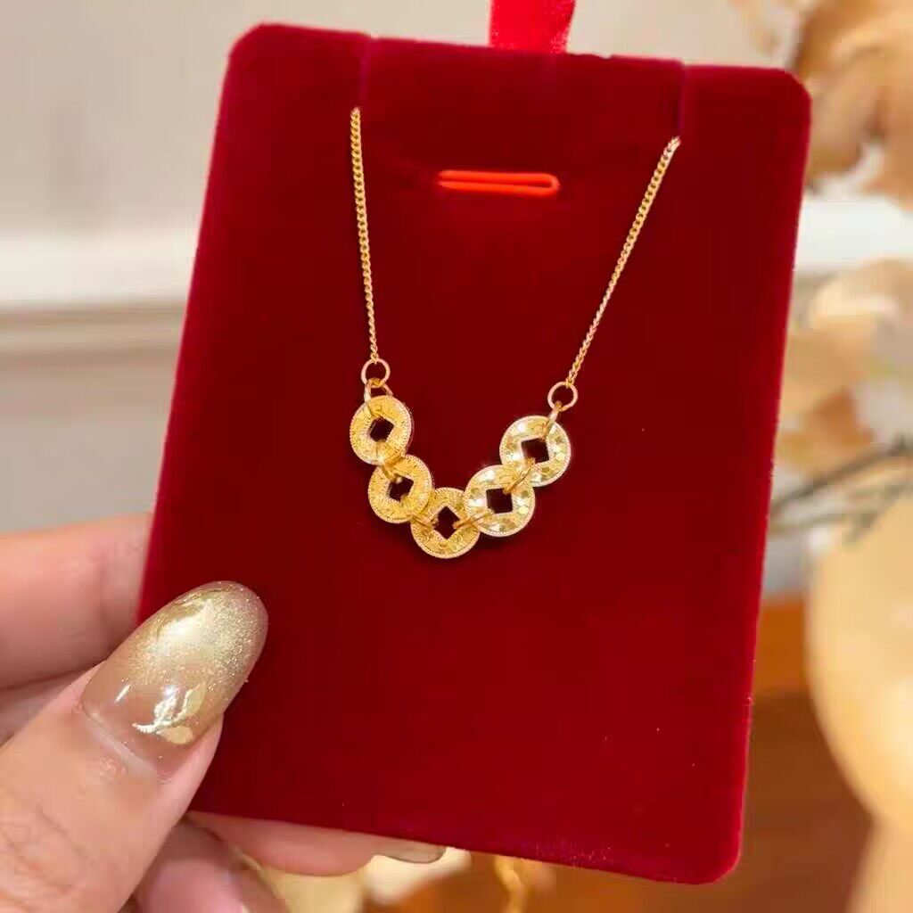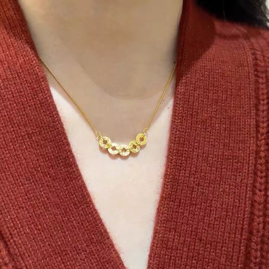 爆闪五帝钱币项链女招财2026新款黄金色毛衣链轻奢小众沙金锁骨链