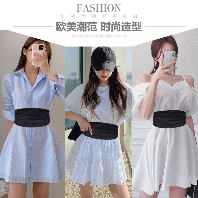 腰封女夏季装饰配连衣裙子束腰松紧弹力红色绿色宽腰带配饰高级感