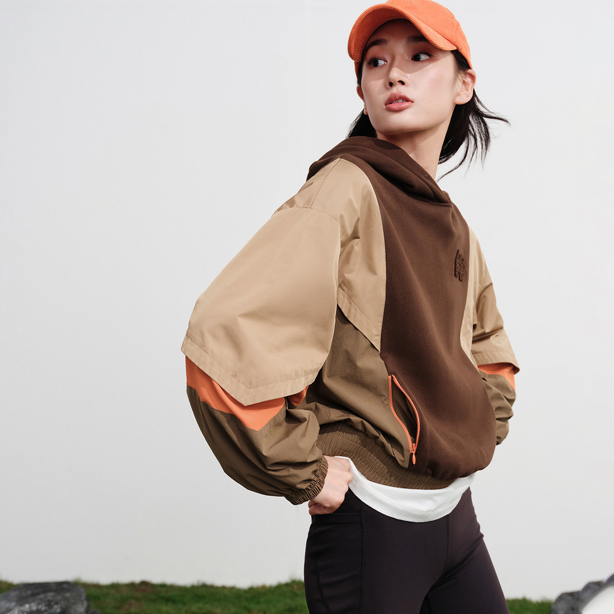 EP雅莹2025早秋新品 运动风松弛感撞色拼接长袖卫衣女款连帽5215A