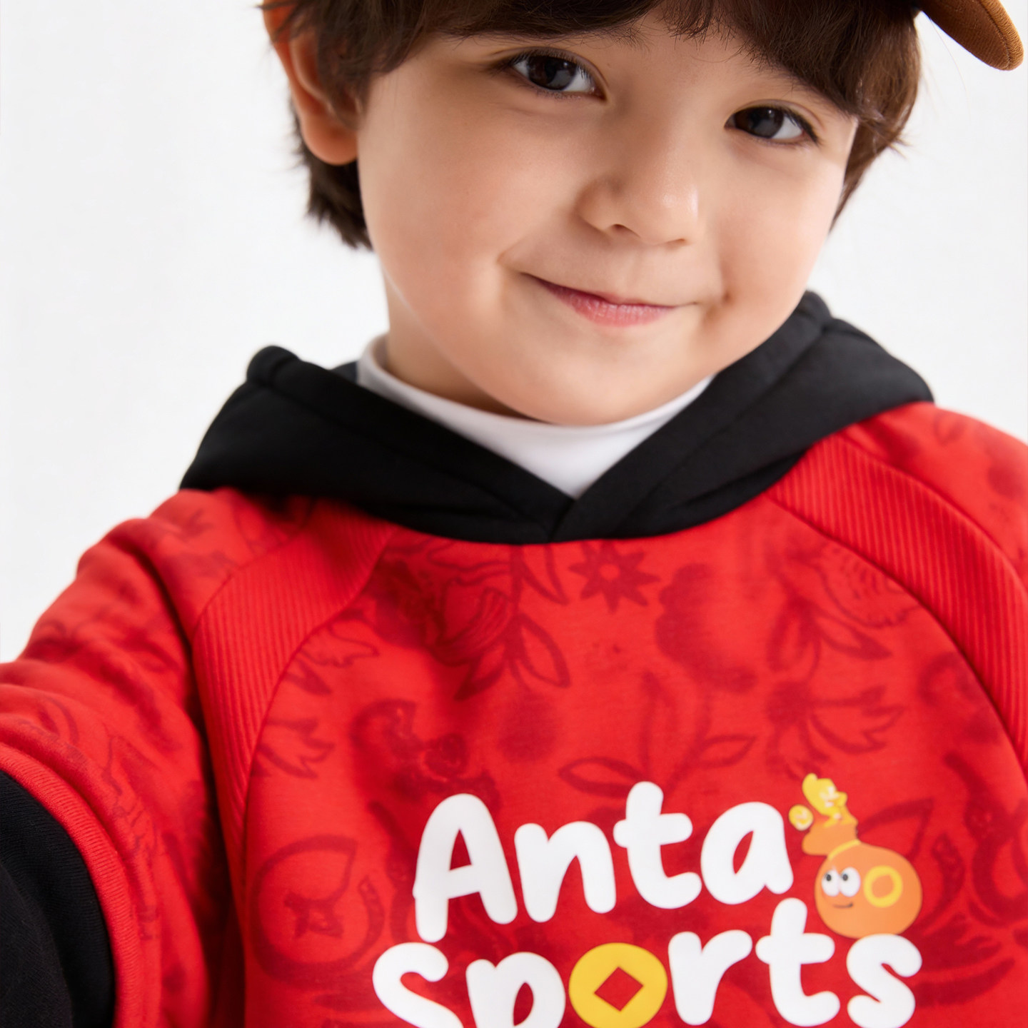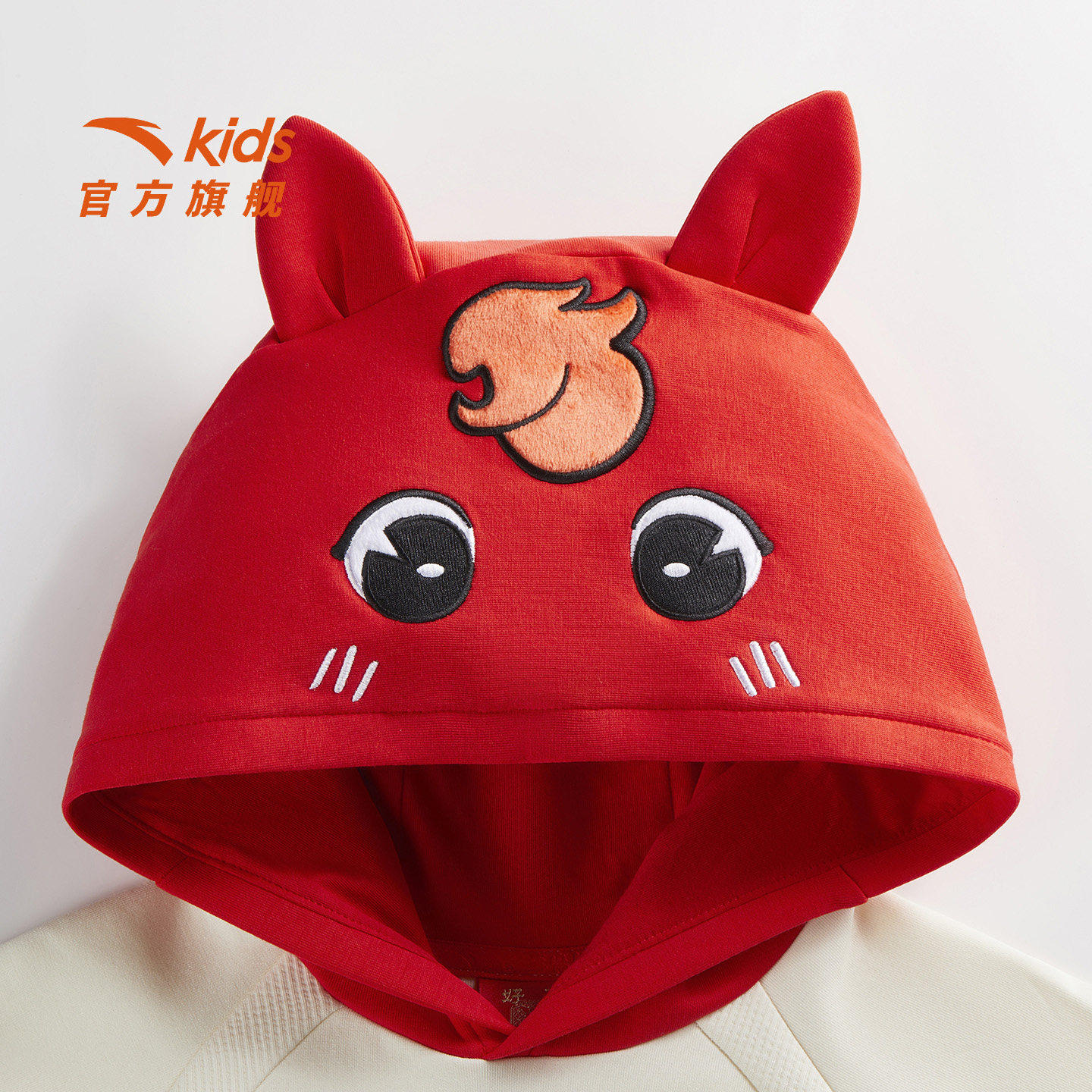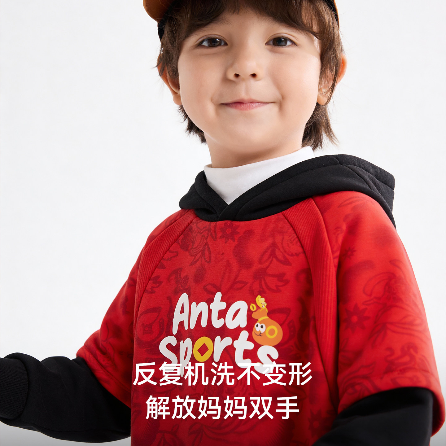 新年款安踏儿童男小童针织连帽套头衫2026年春新舒适亲肤男孩卫衣