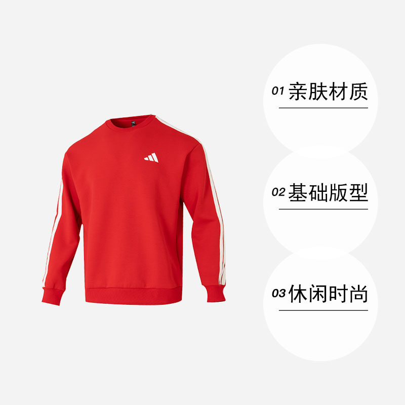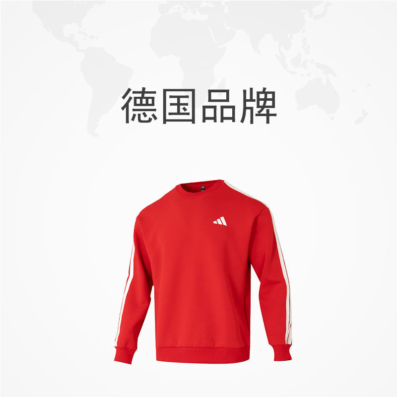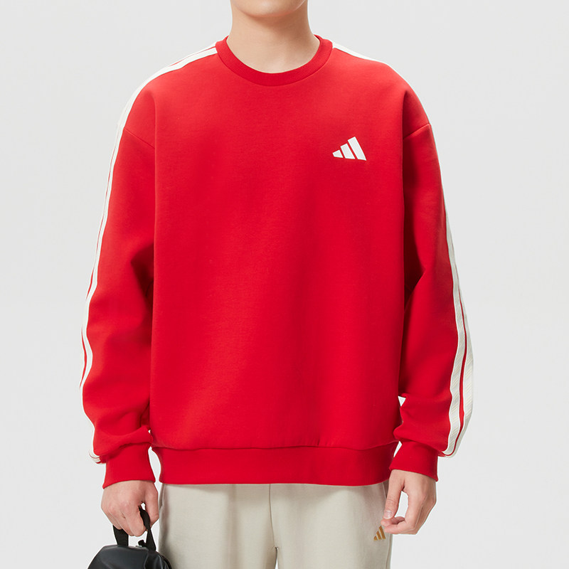 【自营】Adidas阿迪达斯新年款卫衣马年新年男装红色三条纹套头衫