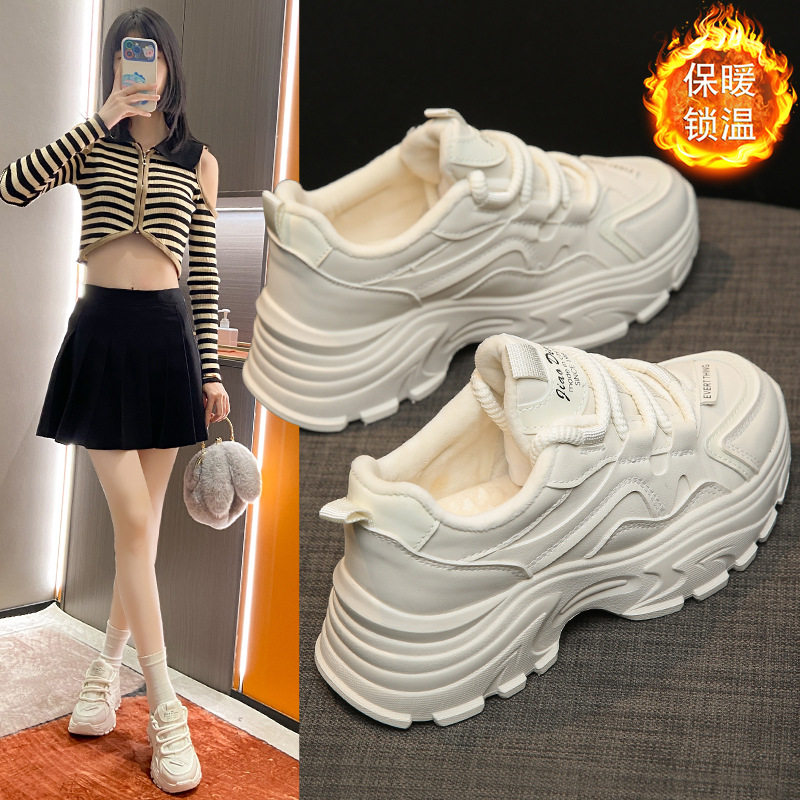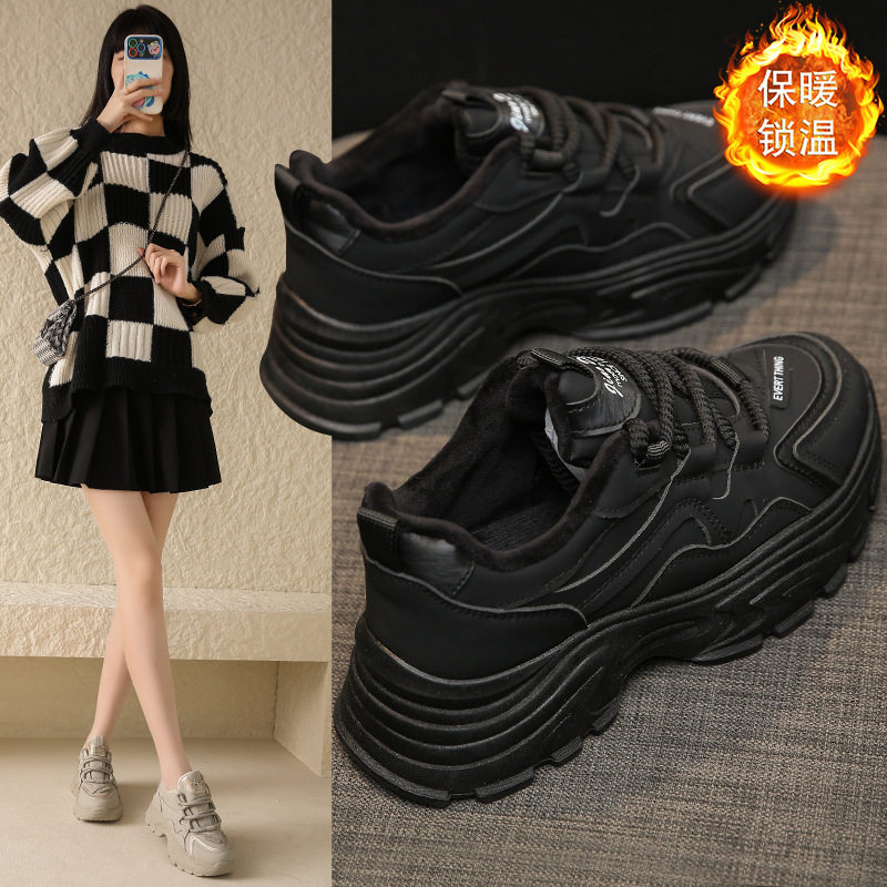 踩屎感女鞋子运动鞋女款冬季加绒年上班保暖棉鞋增高老爹鞋女