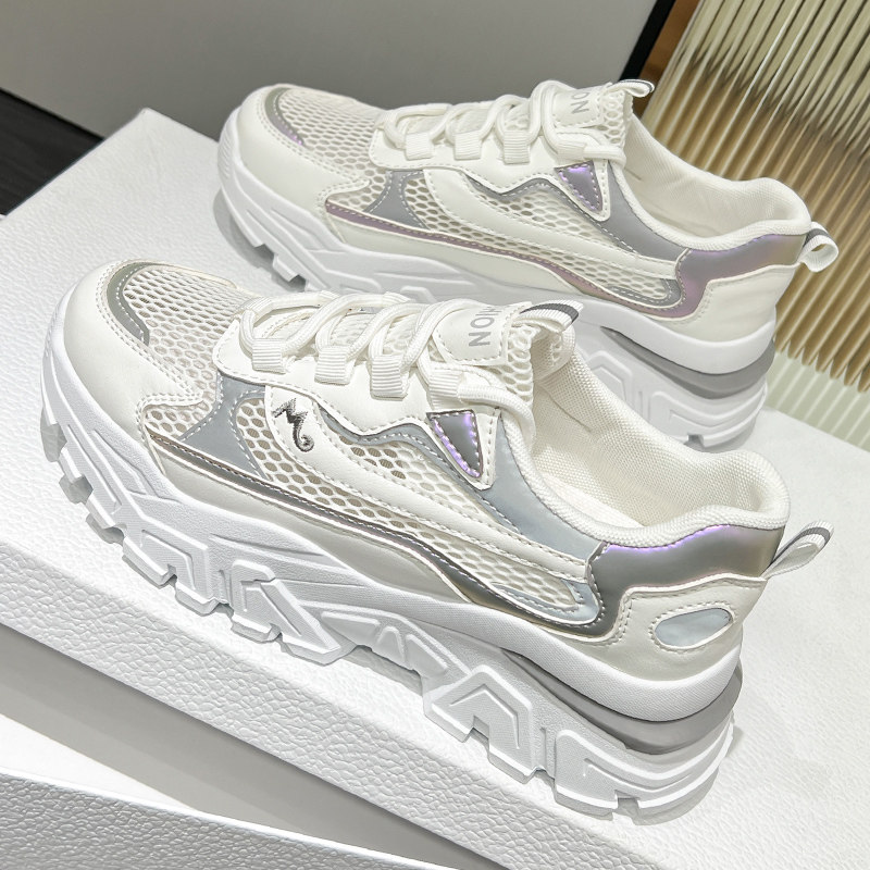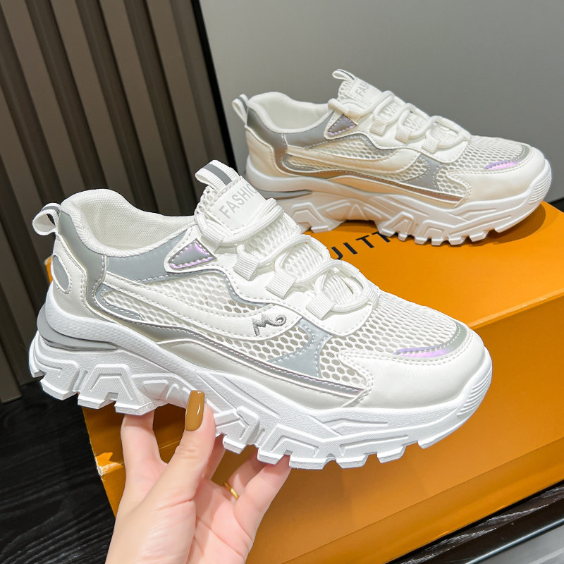 踩屎感夏季镂空单网女鞋老爹鞋女款2024新款厚底小白鞋增高休闲鞋