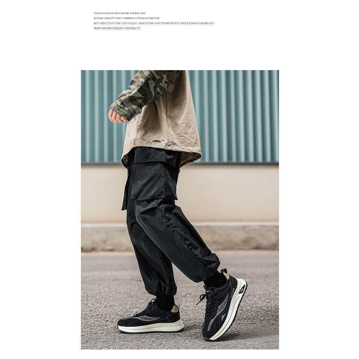 黑色运动跑鞋男轻便软底减震超轻跑步鞋青少年初中生夏季网面透气