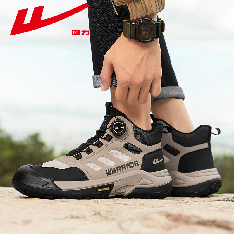 回力男鞋冬季新款百搭减震运动休闲鞋高帮轻便跑步鞋旋转钮扣
