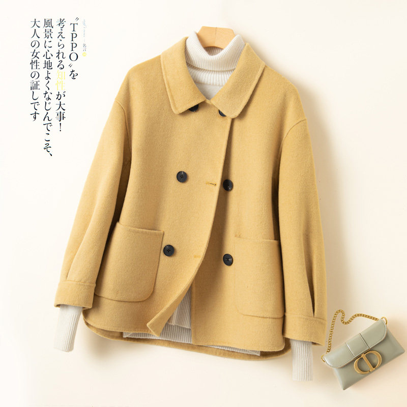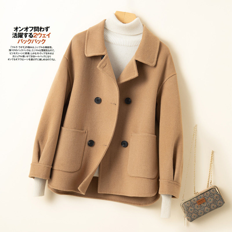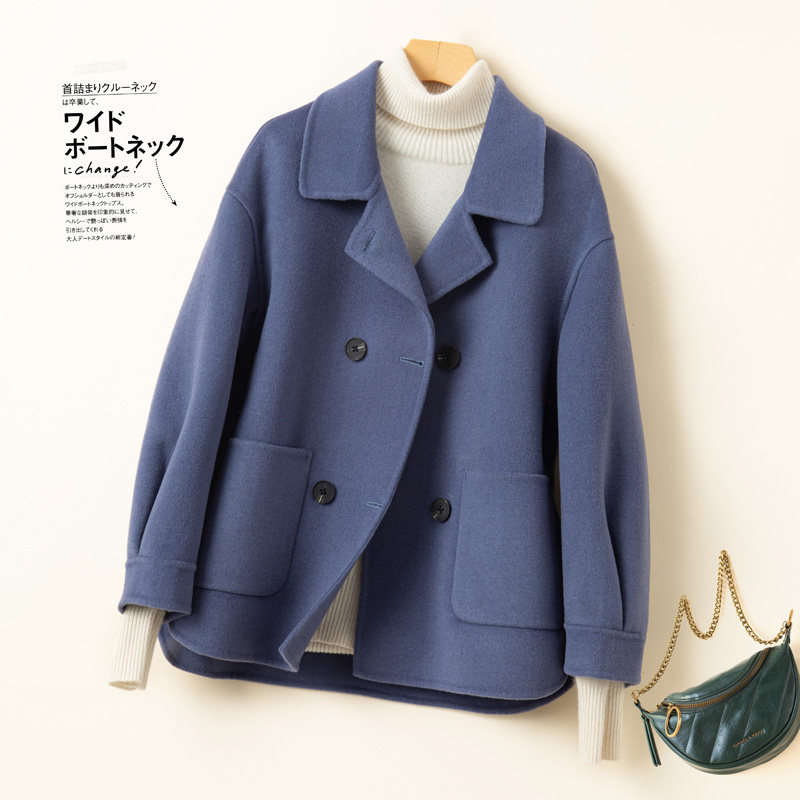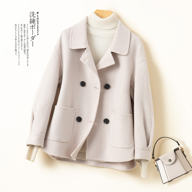 品牌反季新款高端双面羊绒大衣女小个子短款高档纯羊毛呢外套气质