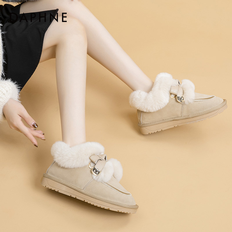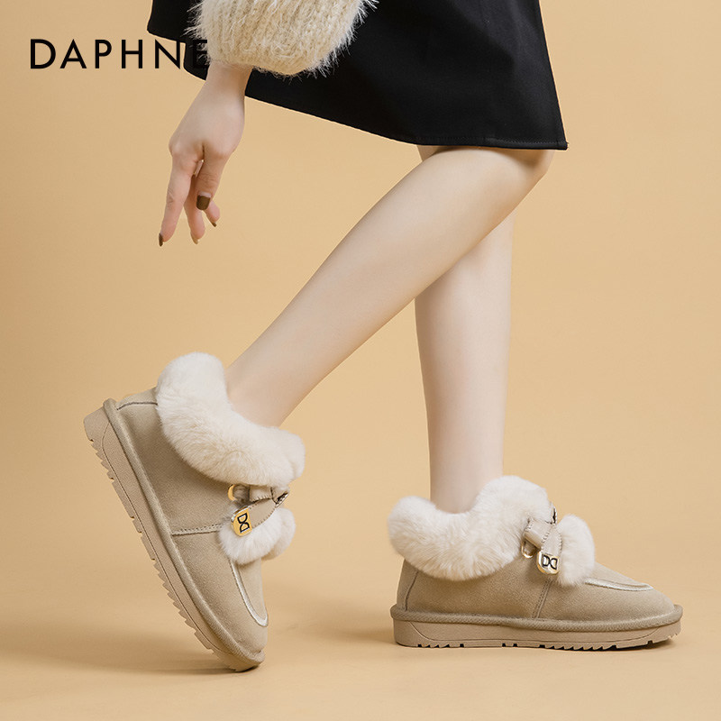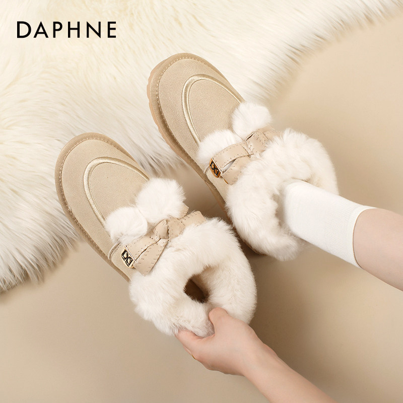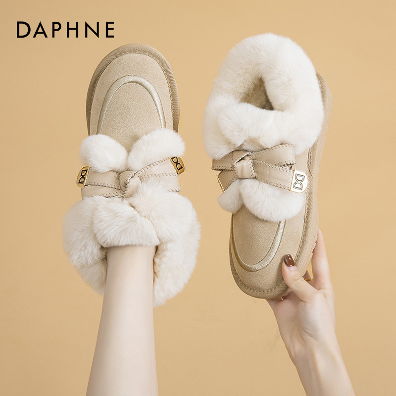 达芙妮真皮厚底雪地靴女款2025冬季新款加绒毛毛鞋保暖棉鞋棉靴子