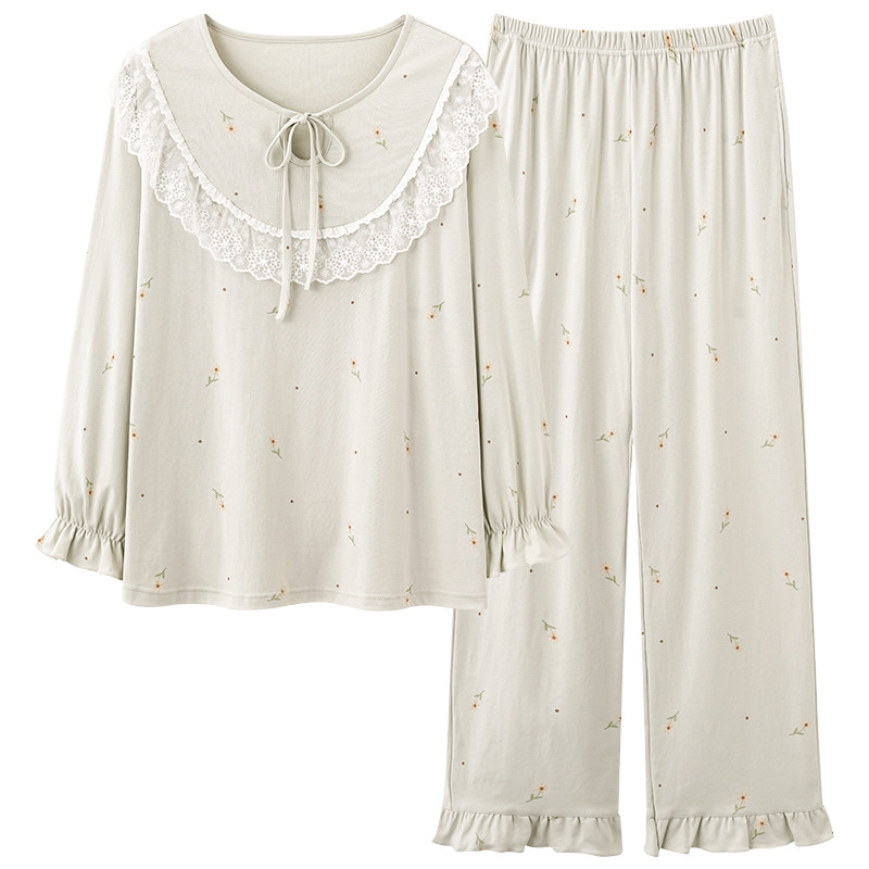 浪莎睡衣纯棉女款圆领套头植物花卉长袖中年妈妈高级感大码家居服