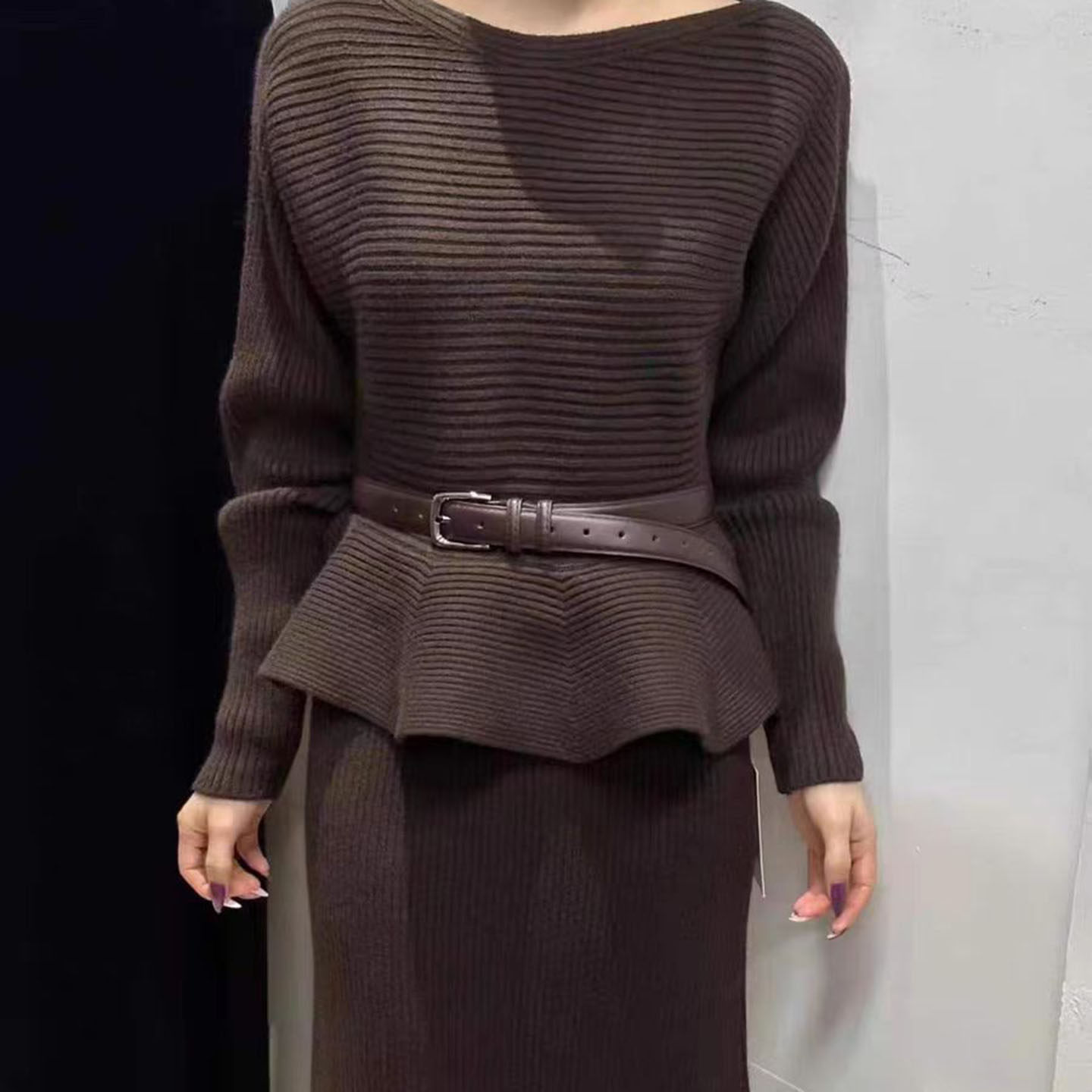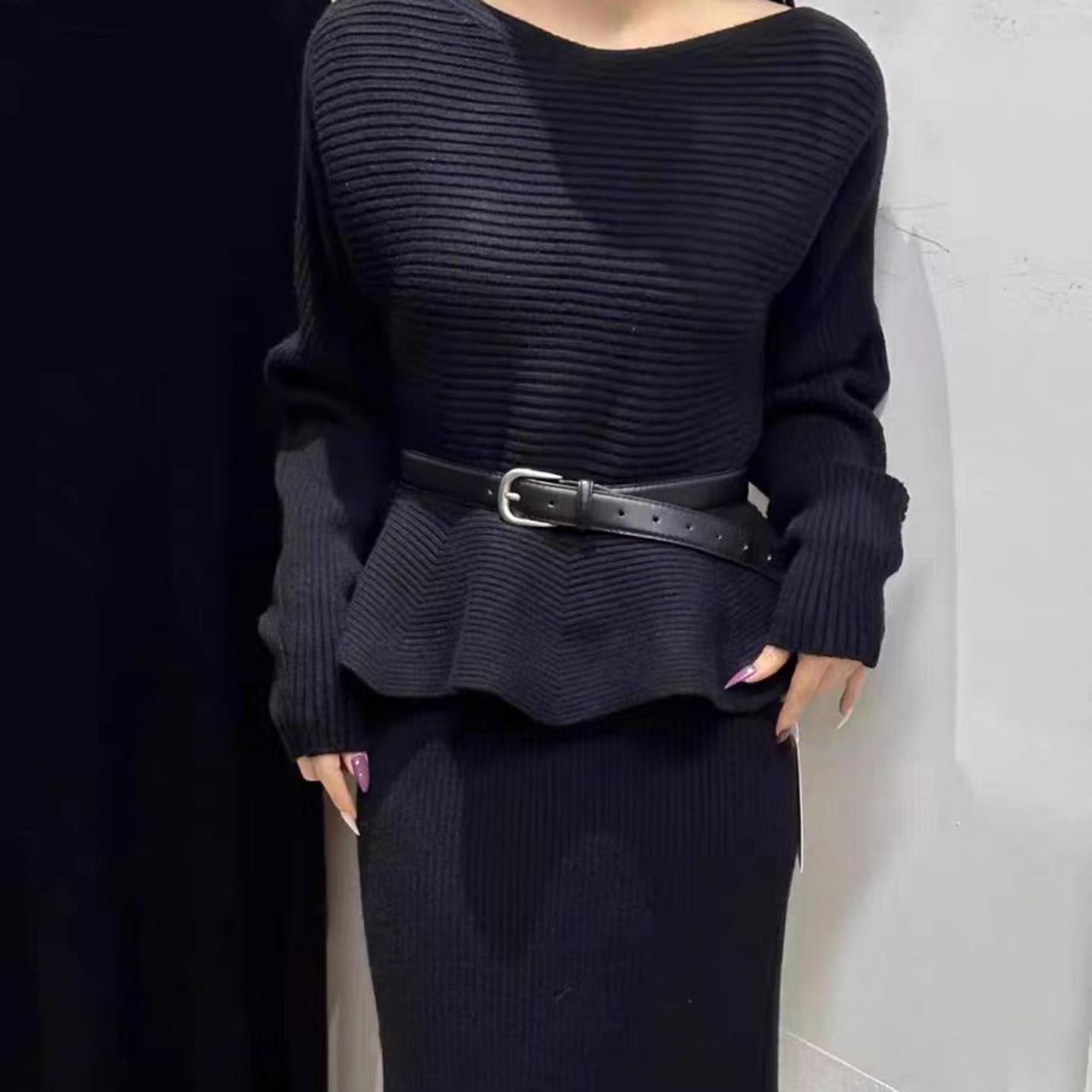 冬季套装连衣裙气质荷叶边上衣+高腰显瘦百搭半身长裙针织两件套