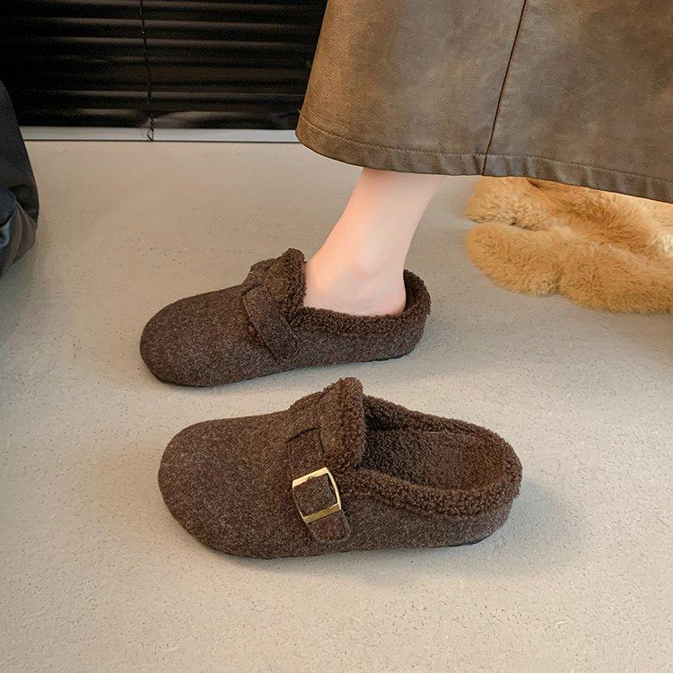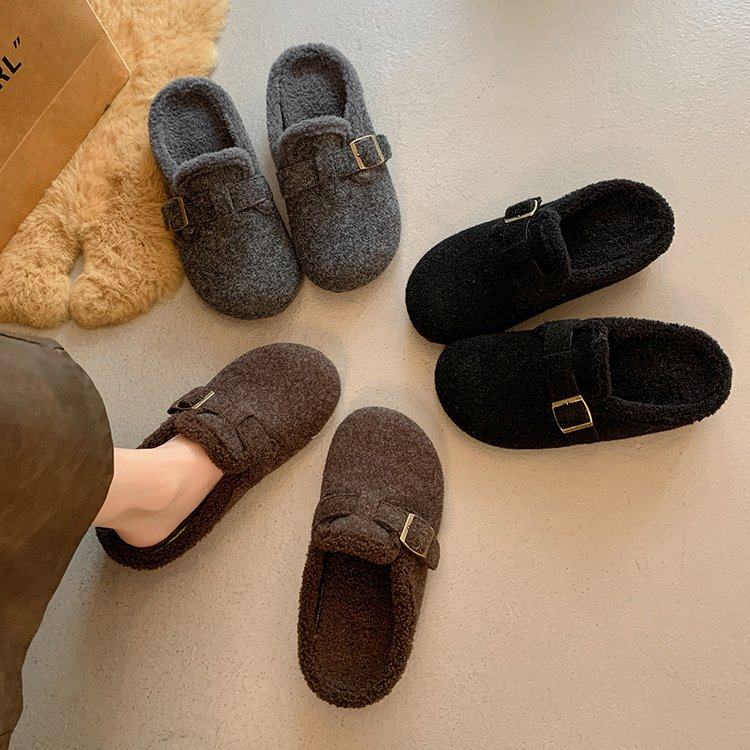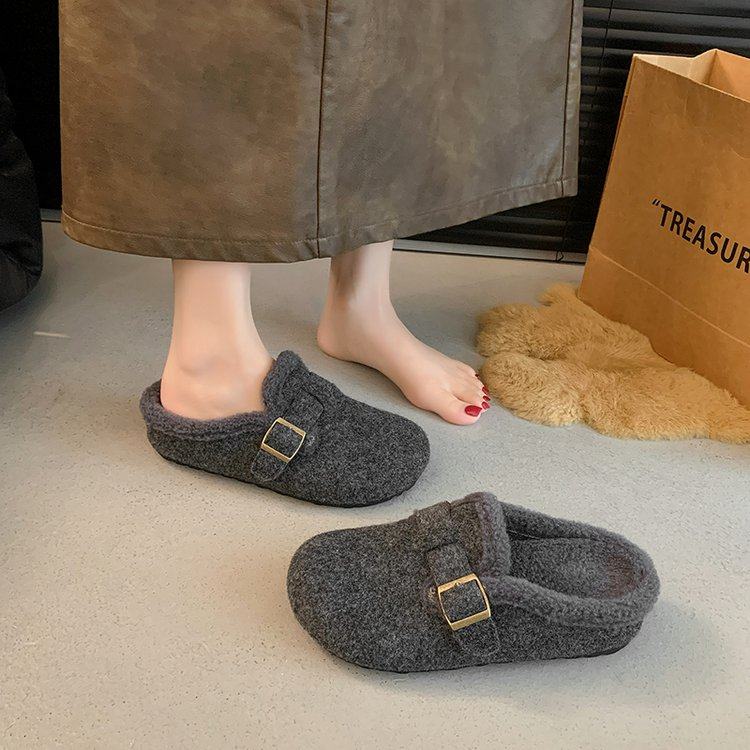内增高灰色毛毛鞋女外穿2025秋冬厚底勃肯鞋加绒厚底包头半拖棉鞋