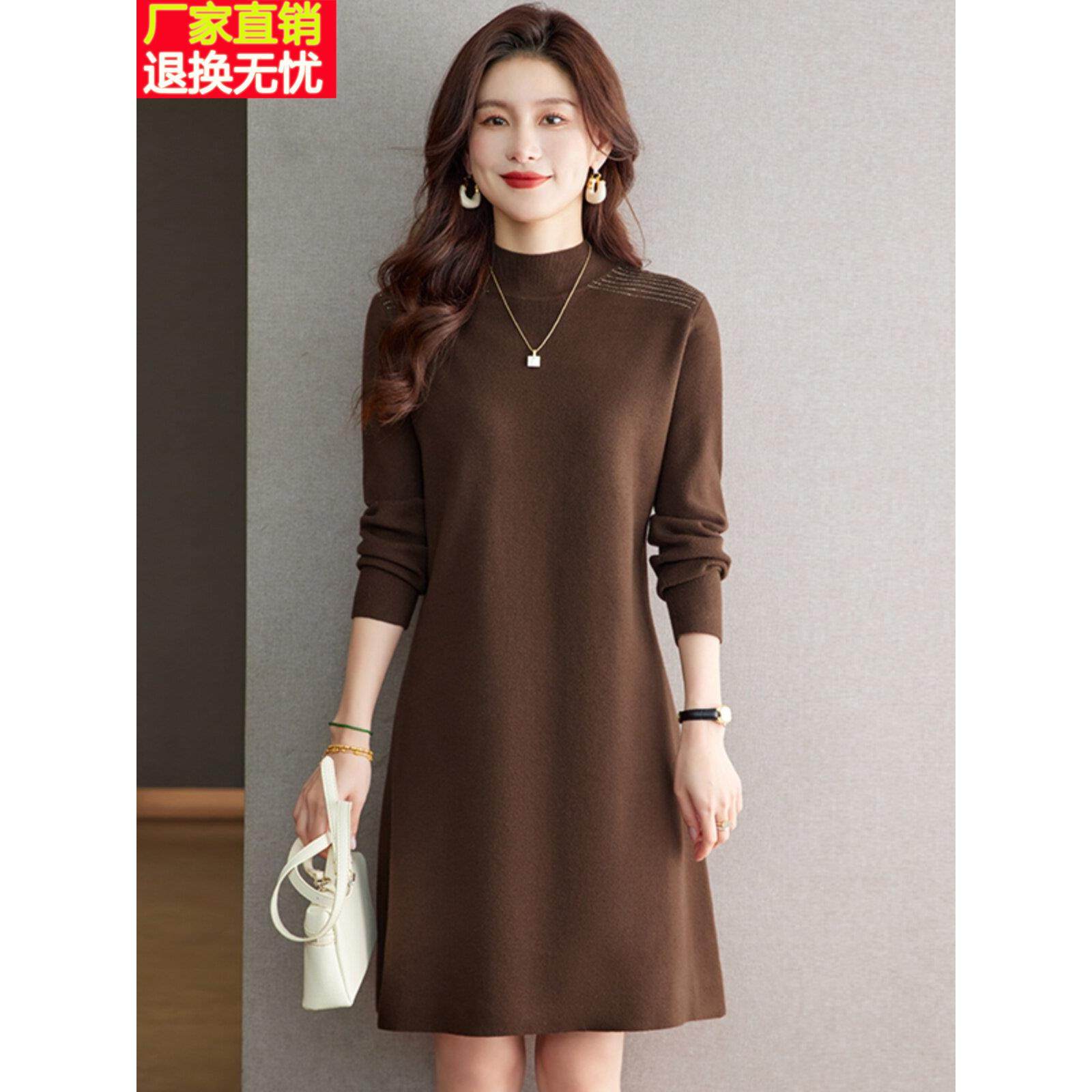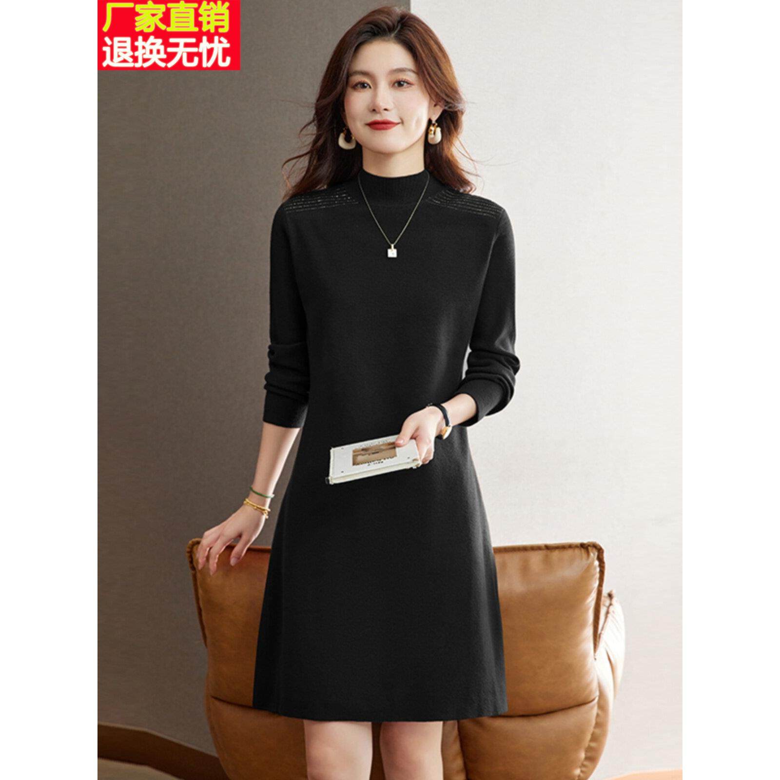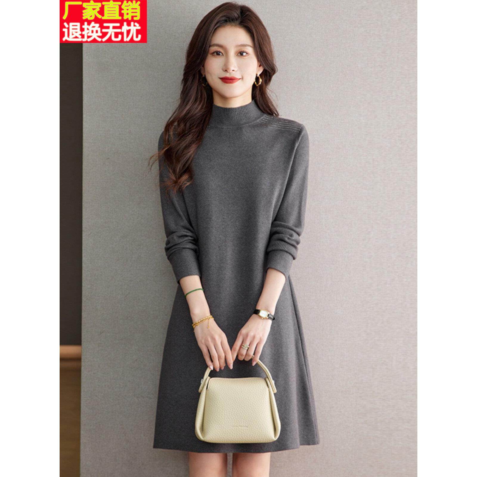 配大衣连衣裙2024新款女秋冬季小个子羊毛针织毛衣裙高端打底裙子