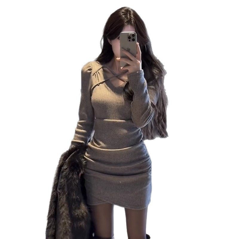 小个子辣妹针织连衣裙子2025秋冬季新款女装配大衣内搭打底包臀裙