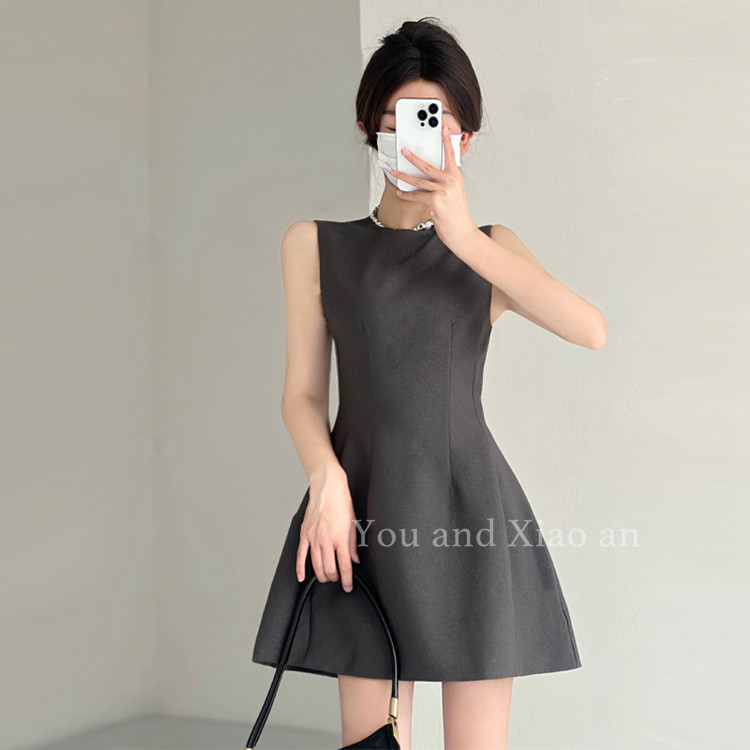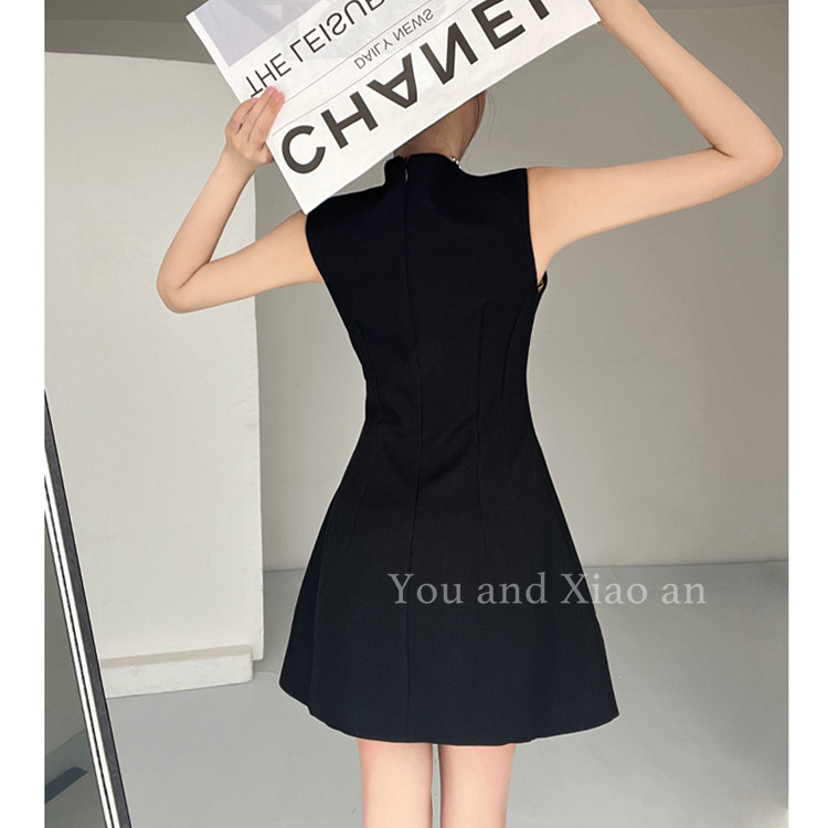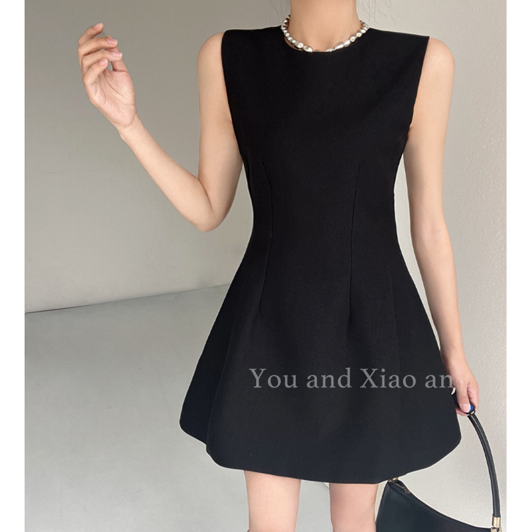 高干女主~高级感黑色无袖连衣裙小个子气质显瘦中长裙千金小礼服