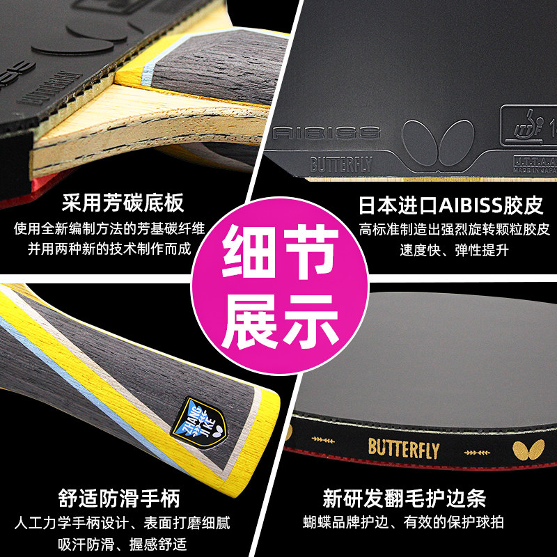 蝴蝶乒乓球拍张继科经典款日本蝴蝶王双面胶皮碳素专业级直拍单拍