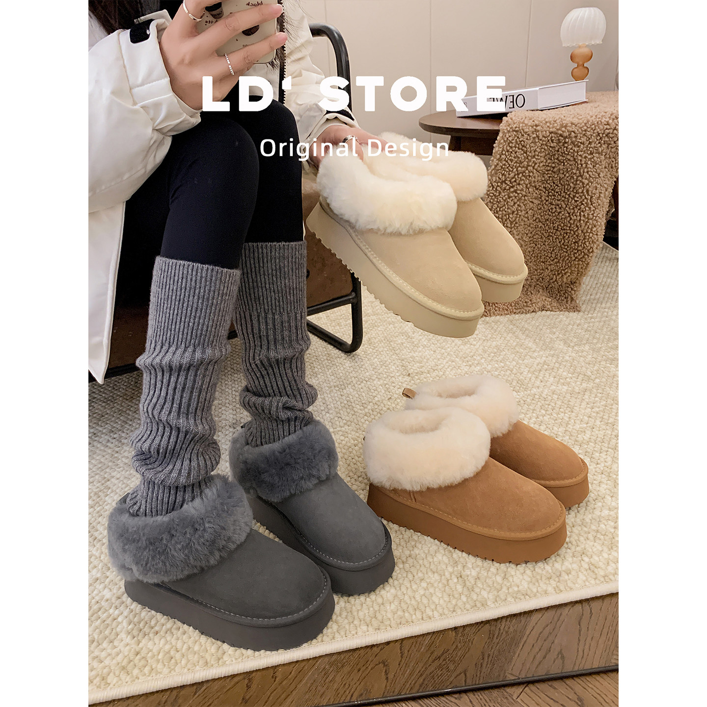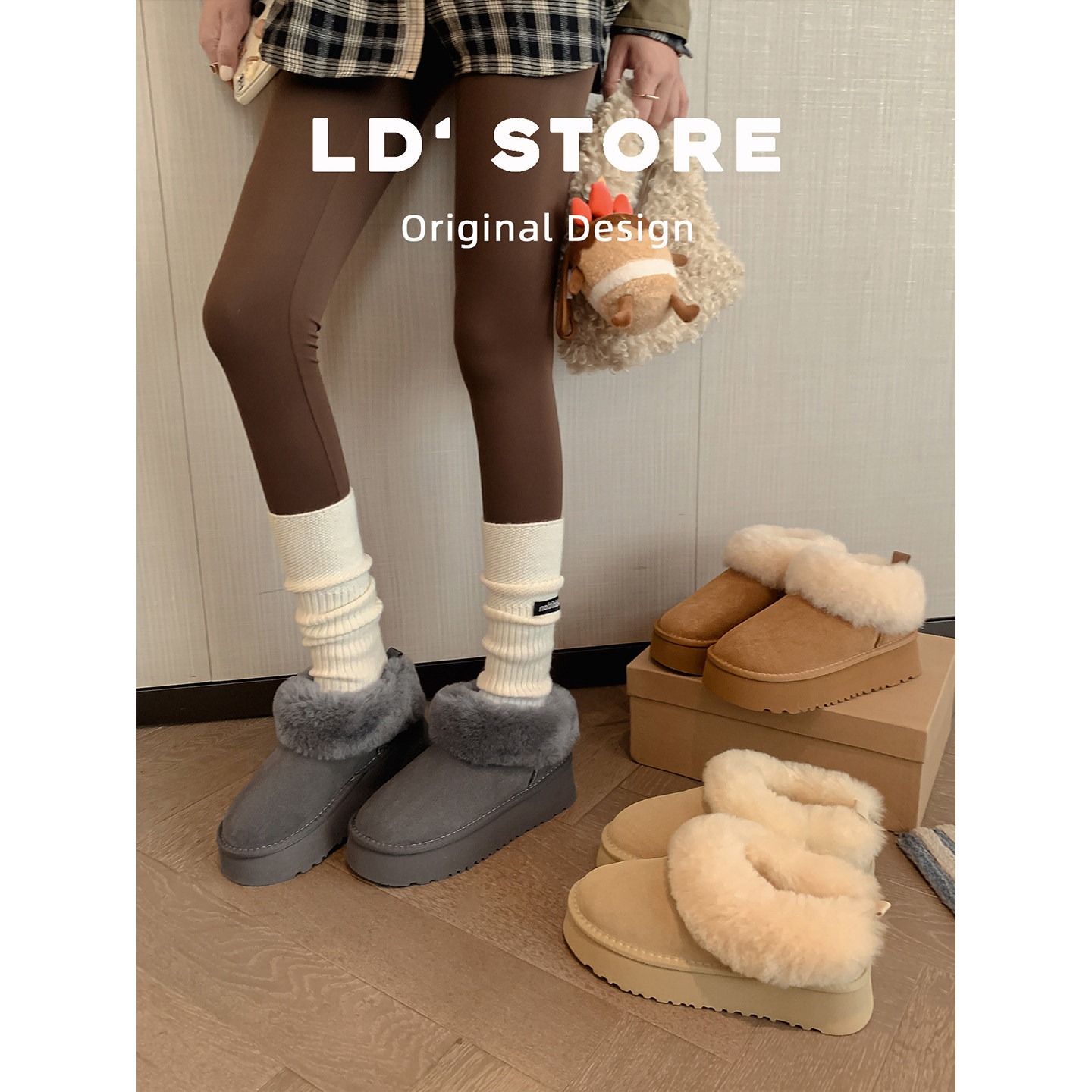 真皮羊毛~7CM内增高厚底雪地靴女冬季新款保暖加绒加厚毛毛鞋棉鞋