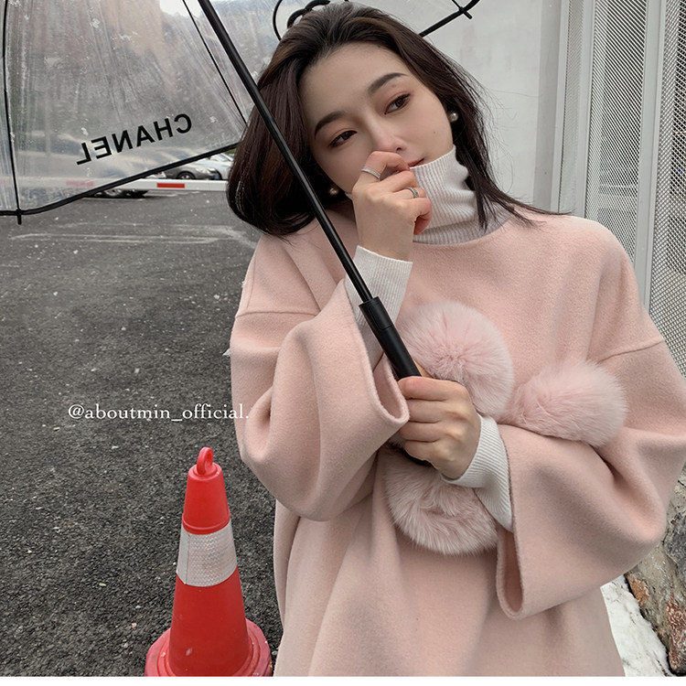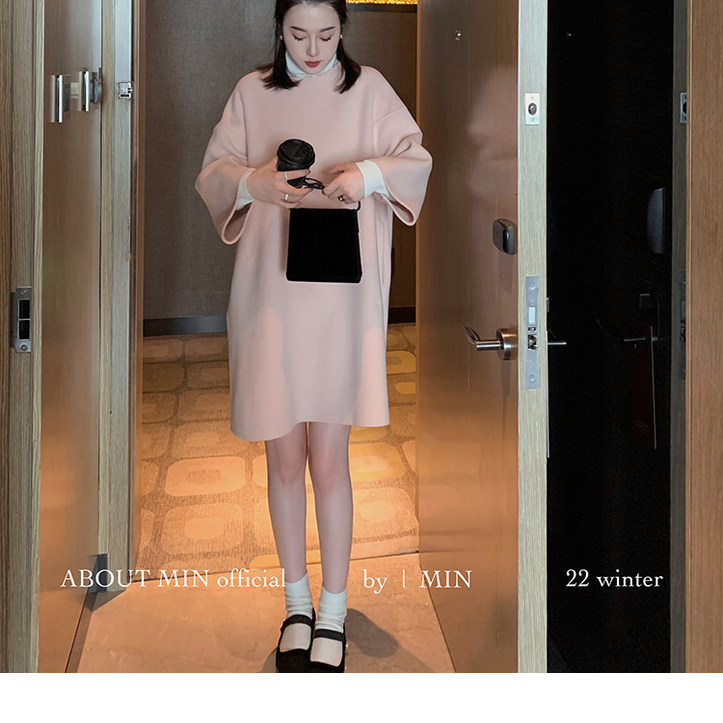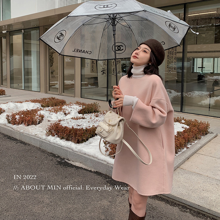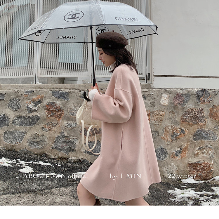 秋冬新款双面呢羊毛大衣女款中长款高级感宽松温柔粉色连衣裙外套