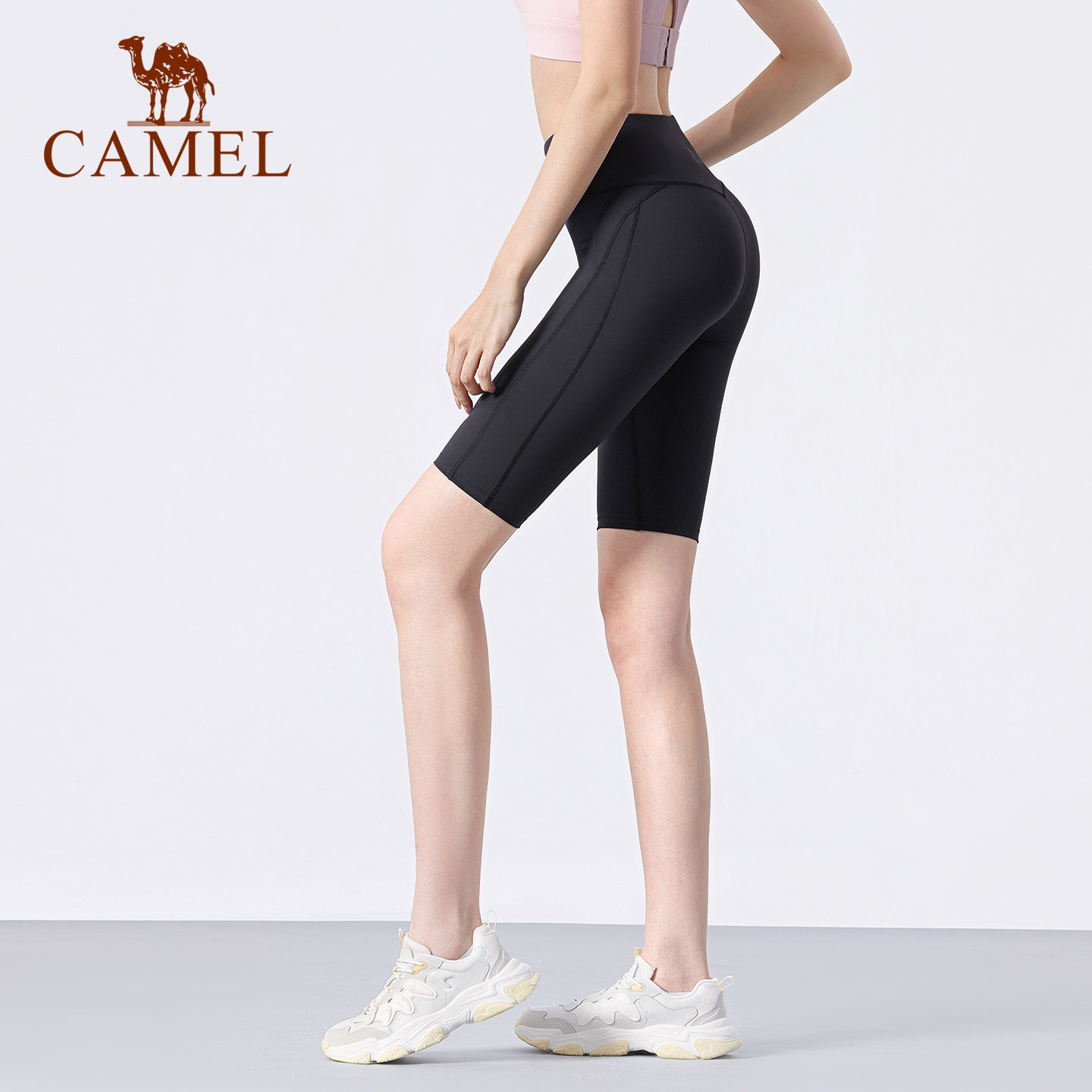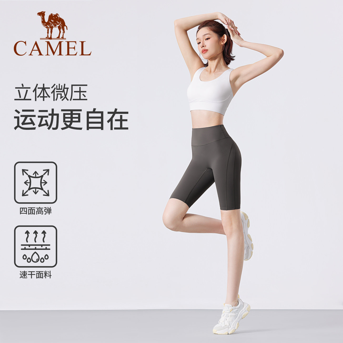 骆驼瑜伽短裤女春季速干塑形透气运动五分裤时尚跑步训练健身短裤