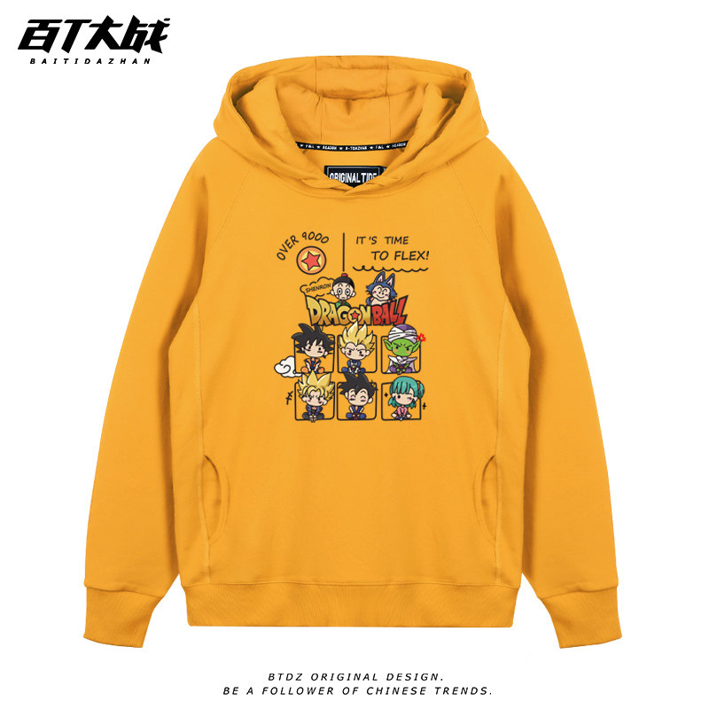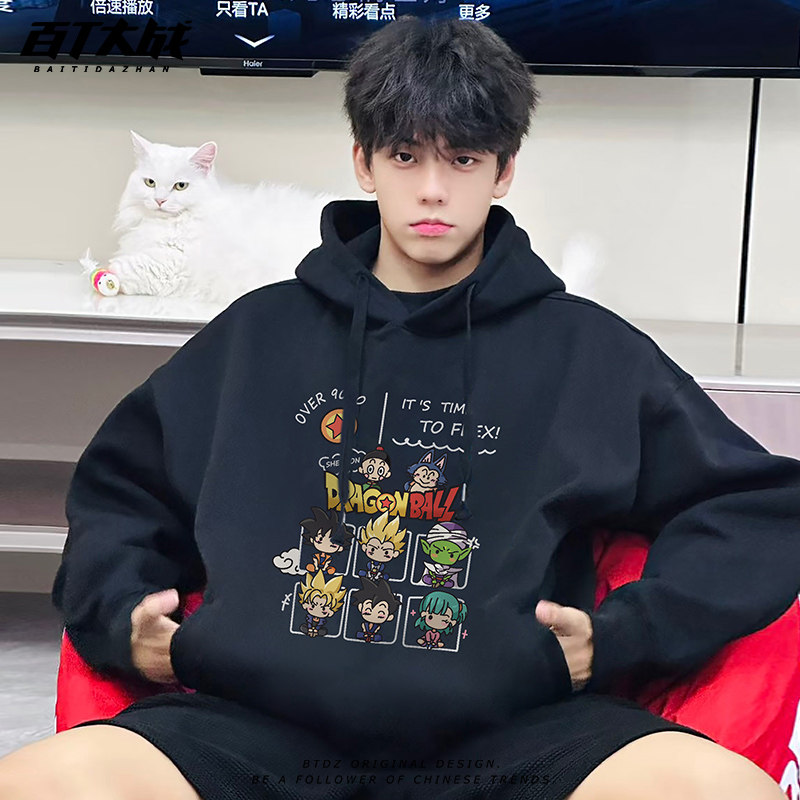 日系卡通龙珠印花连帽卫衣男女款无性别潮流趣味正肩纯棉情侣长袖
